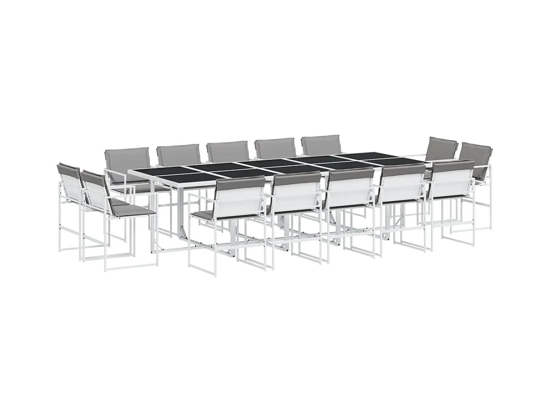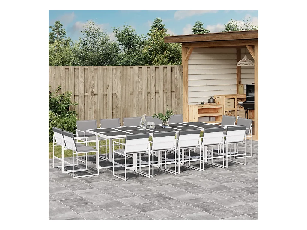 Dunkitt Ensemble à manger de jardin avec coussins 15pcs blanc textilène