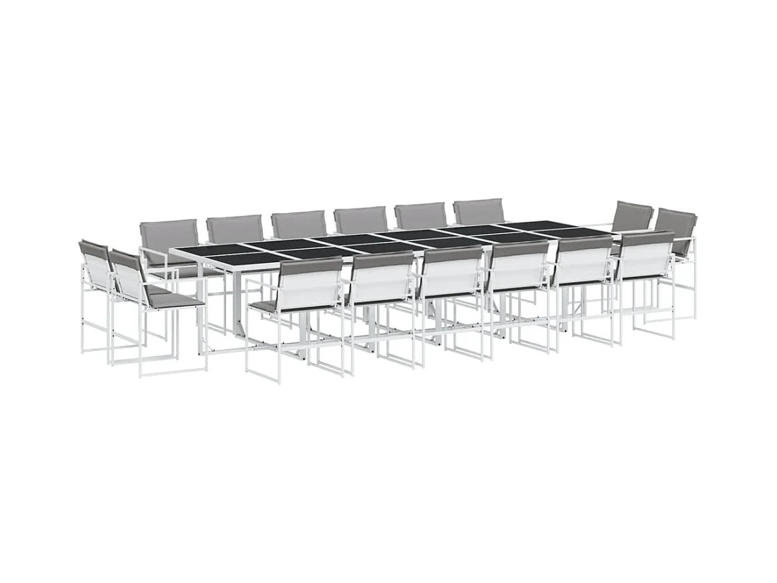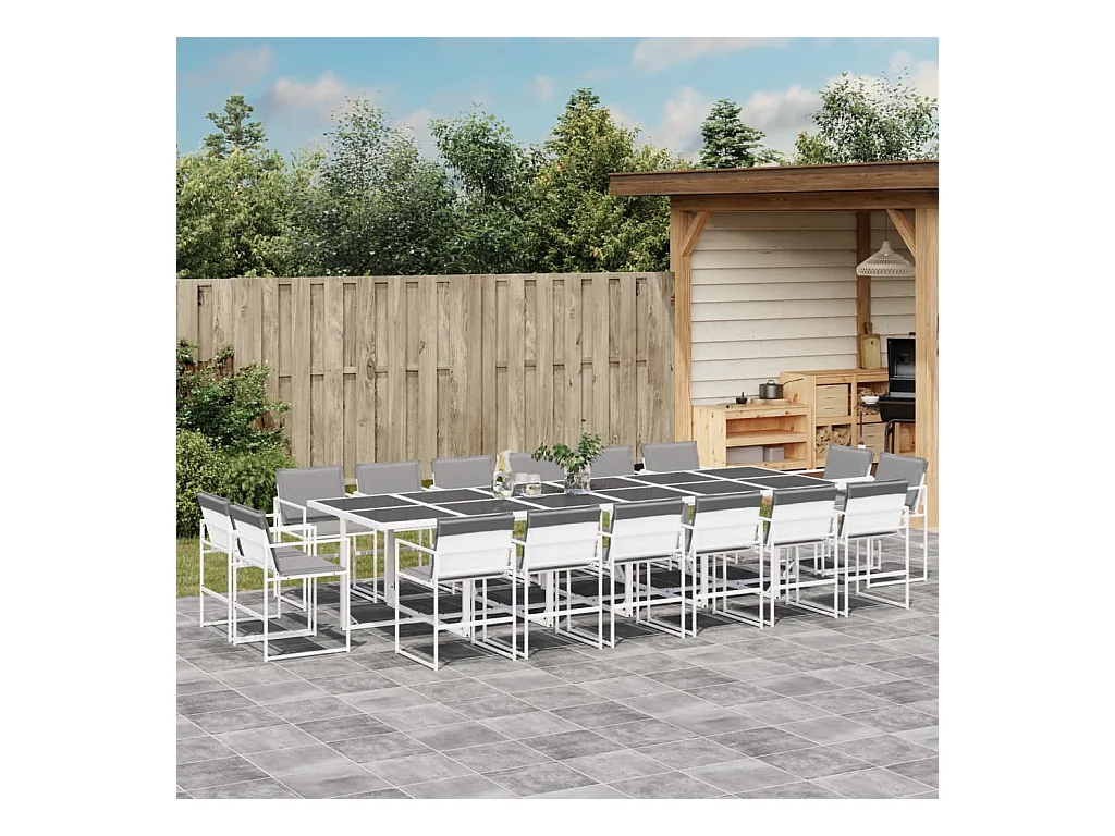 Dunkitt Ensemble à manger de jardin avec coussins 17pcs blanc textilène