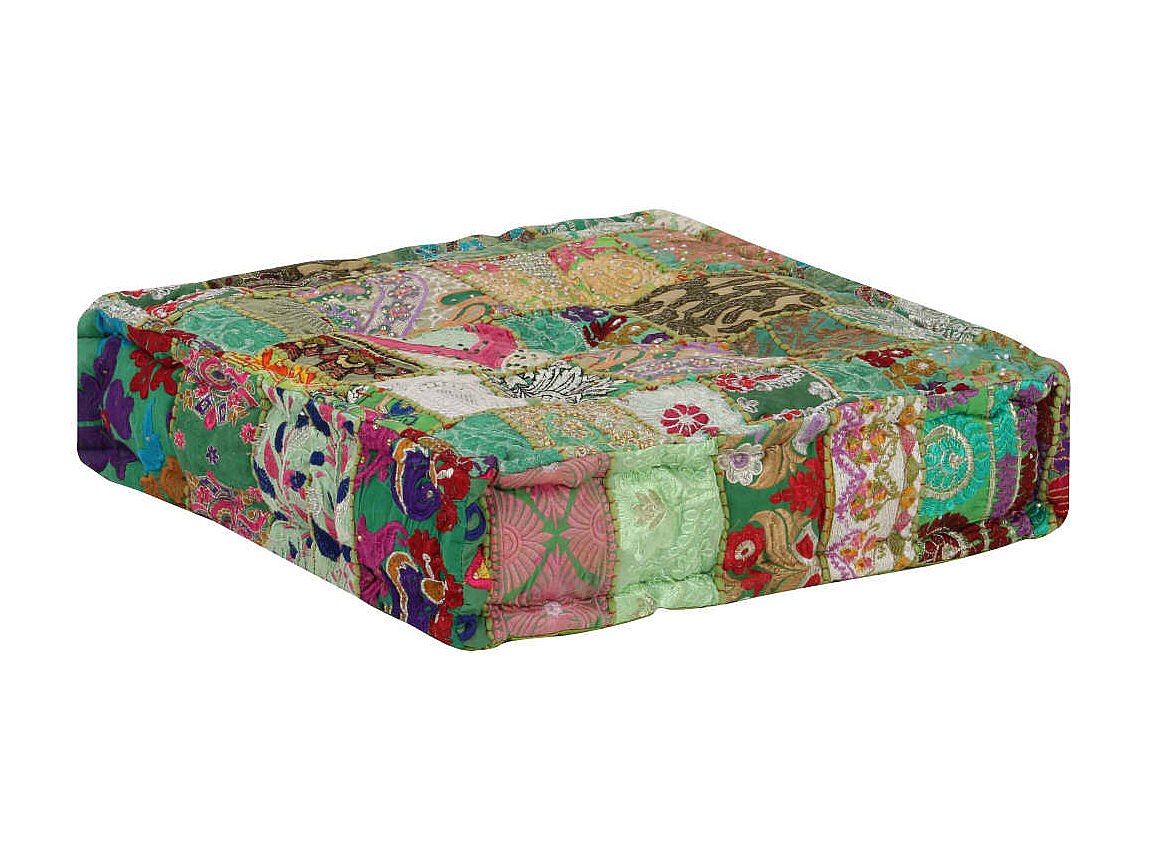 Wallingford Pouf carré en coton fait à la main 50 x 50 x 12 cm Vert