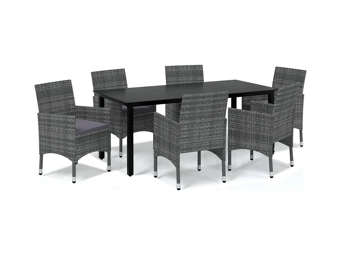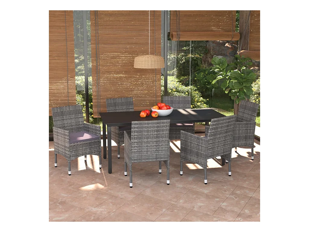 Anselm Ensemble à manger de jardin et coussins 7 pcs gris rotin