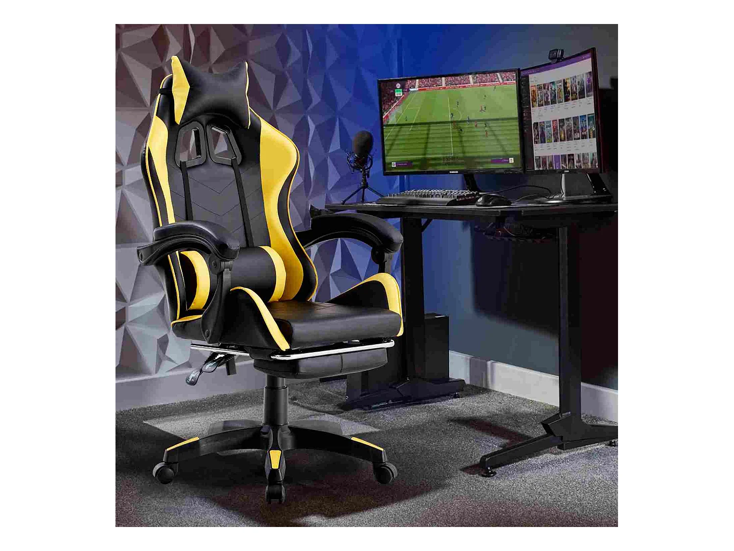 WeHome - Fauteuil gamer inclinable avec repose-pieds jaune et noir