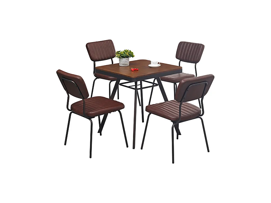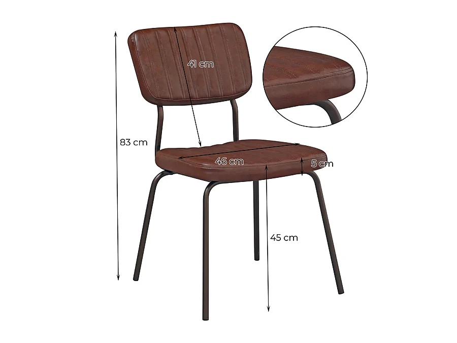 WeHome - Lot de 4 chaises d'intérieur industrielles tapissées en éco-cuir marron