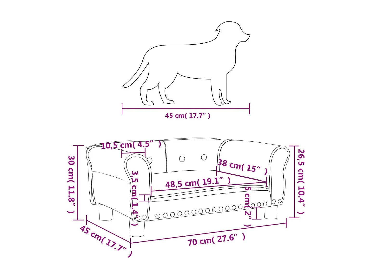 Angeren Lit pour cen noir 70x48x22 cm velours