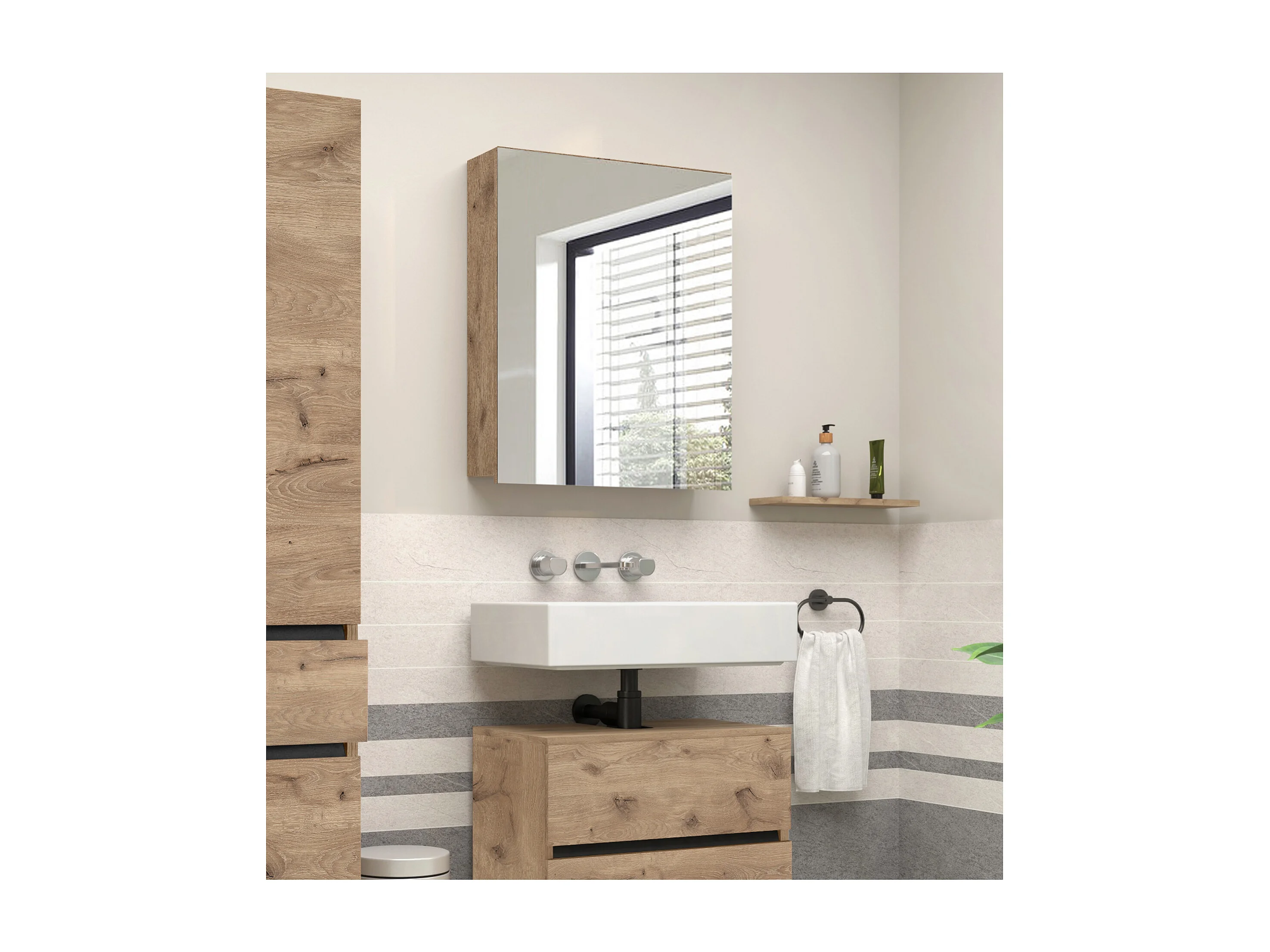 Wisla | Armoire murale avec une porte miroir aspect bois