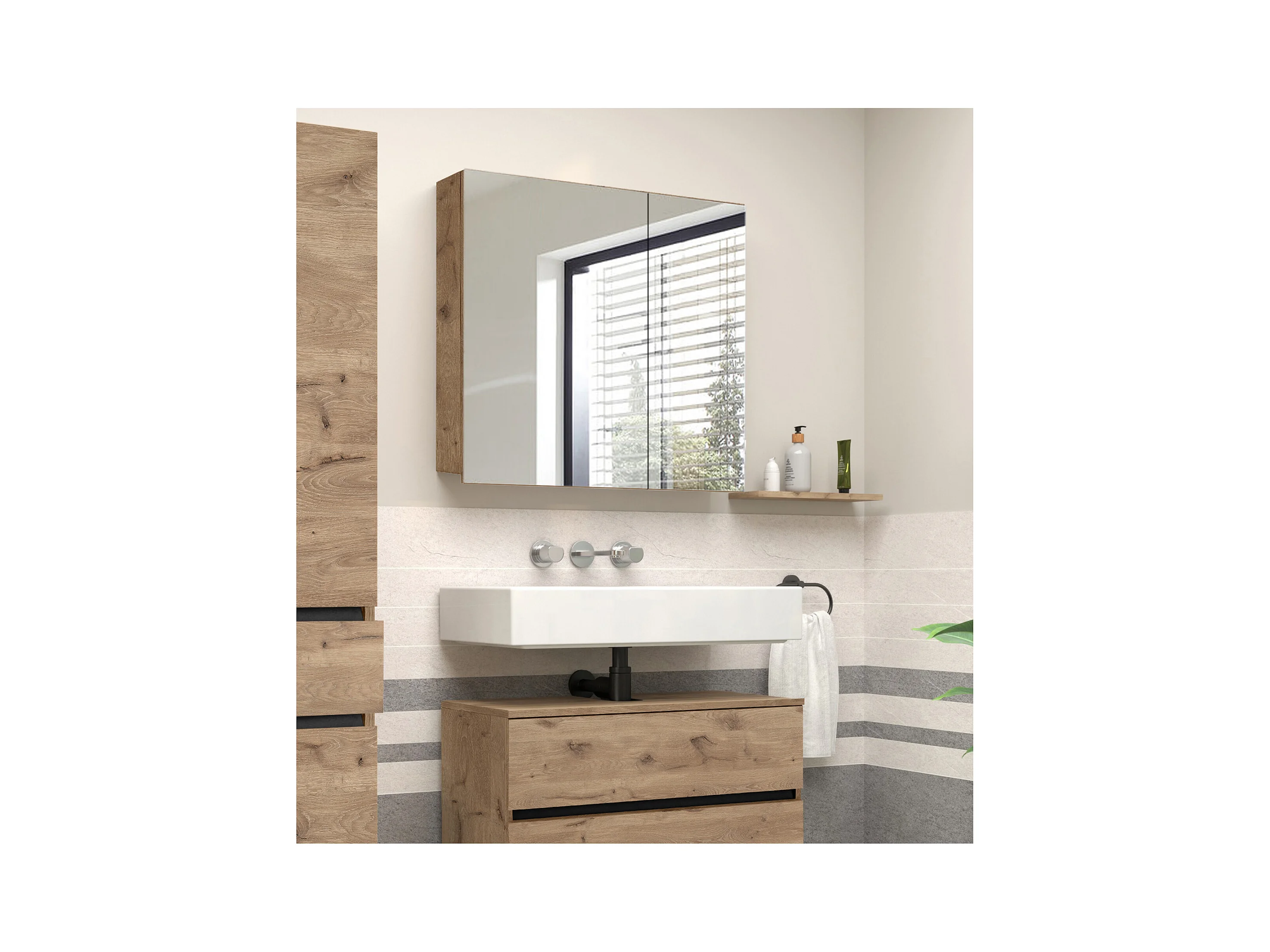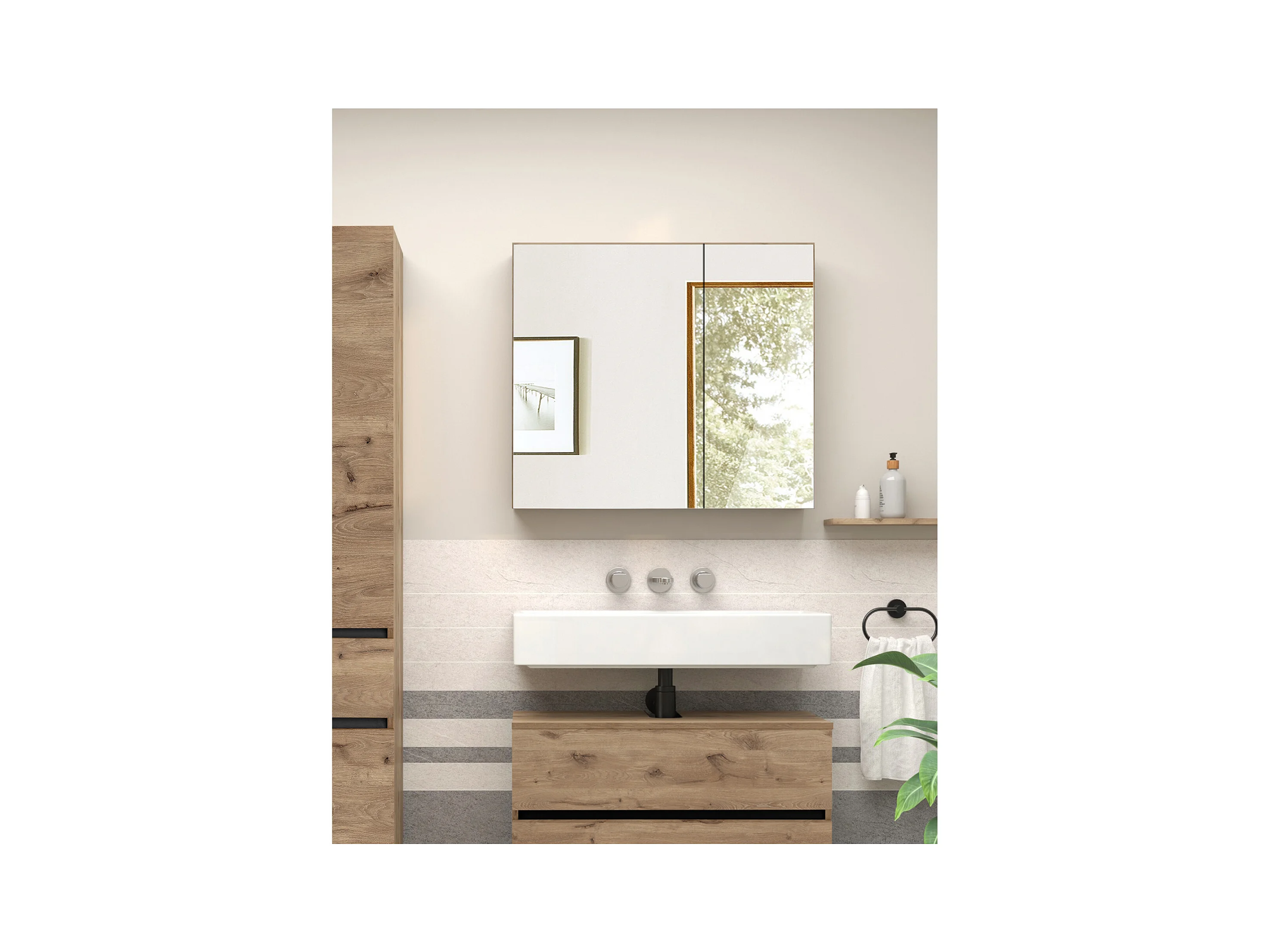 Wisla | Meuble de toilette mural de salle de bain avec 2 portes en aspect chêne