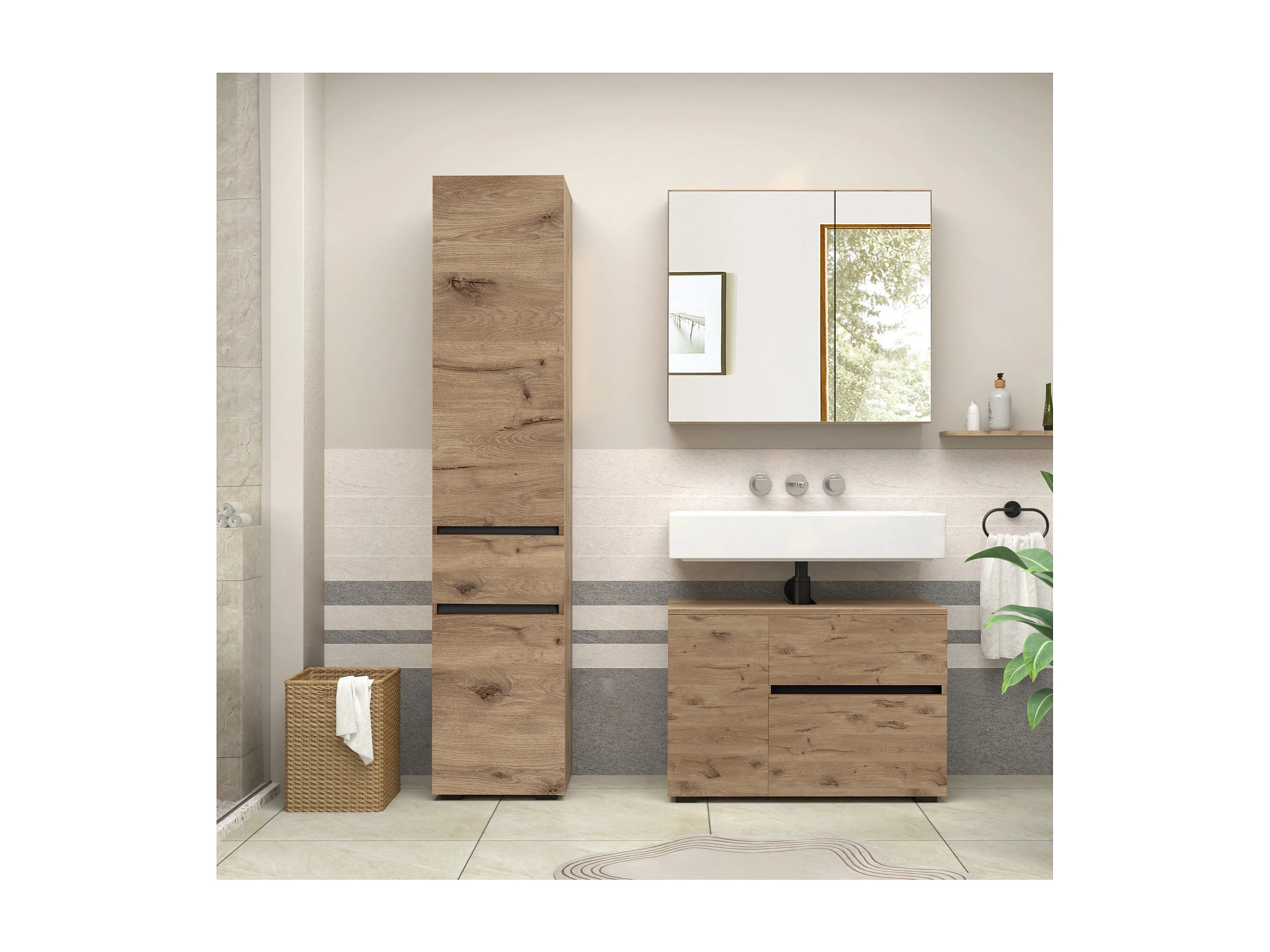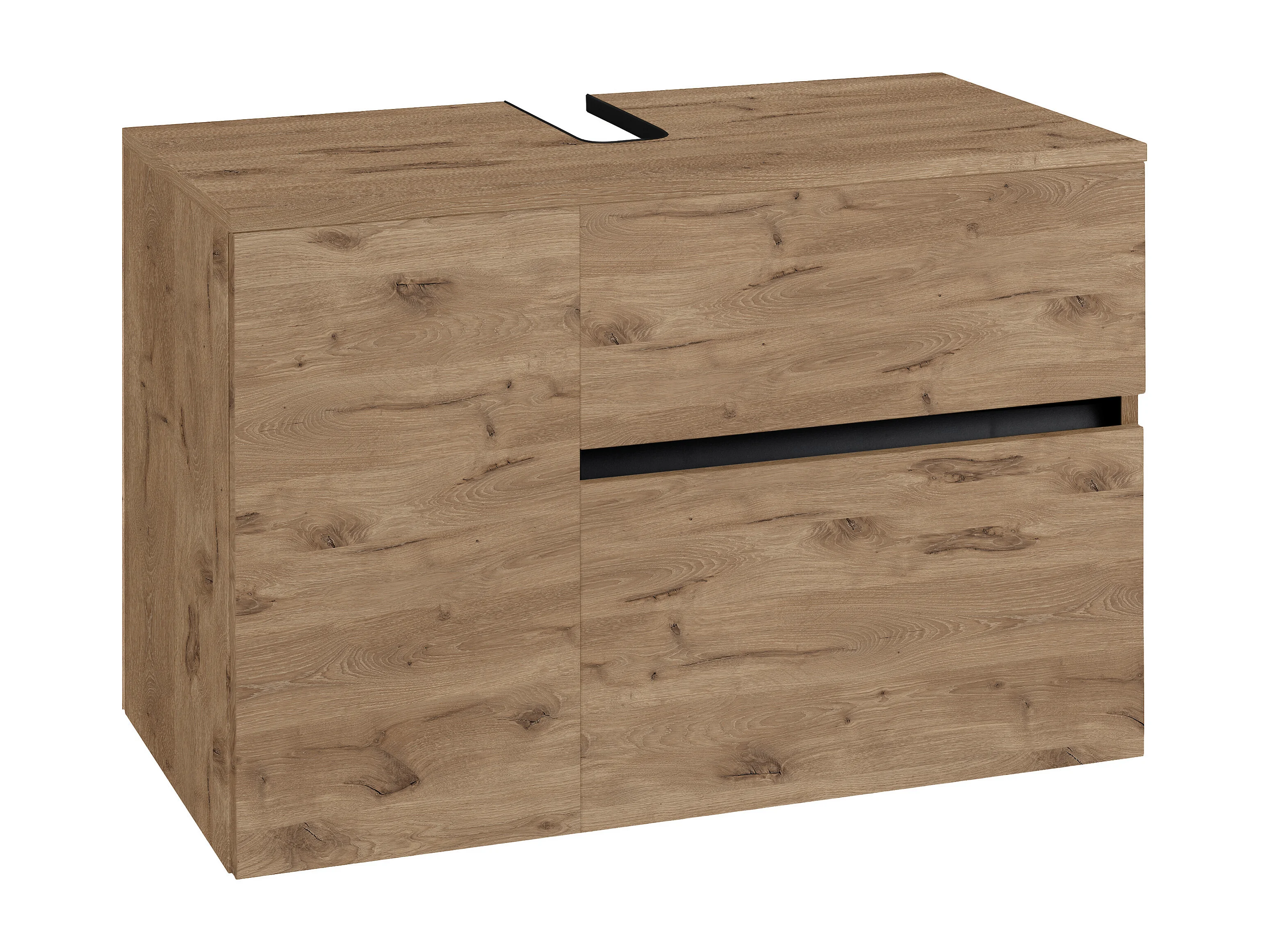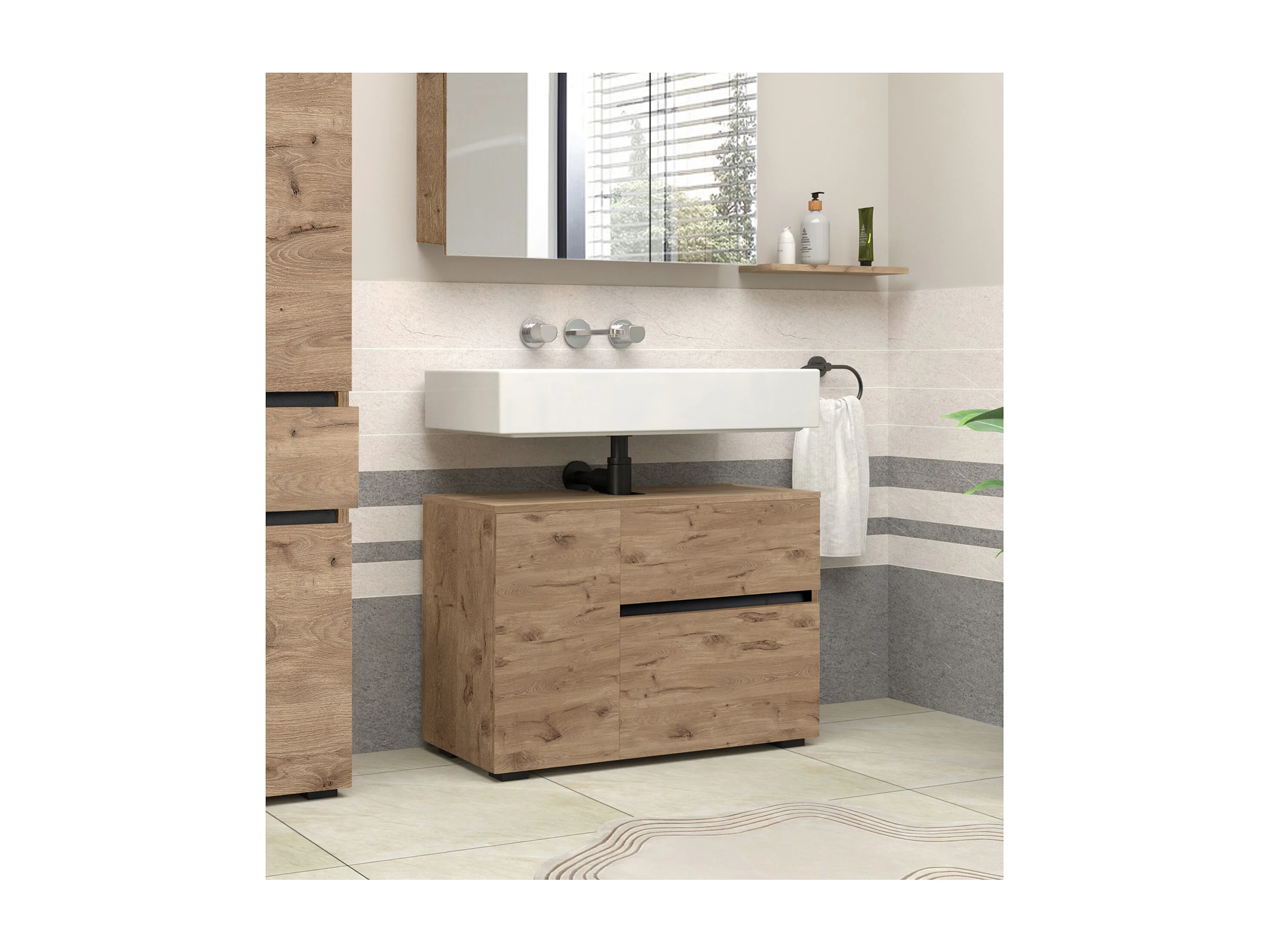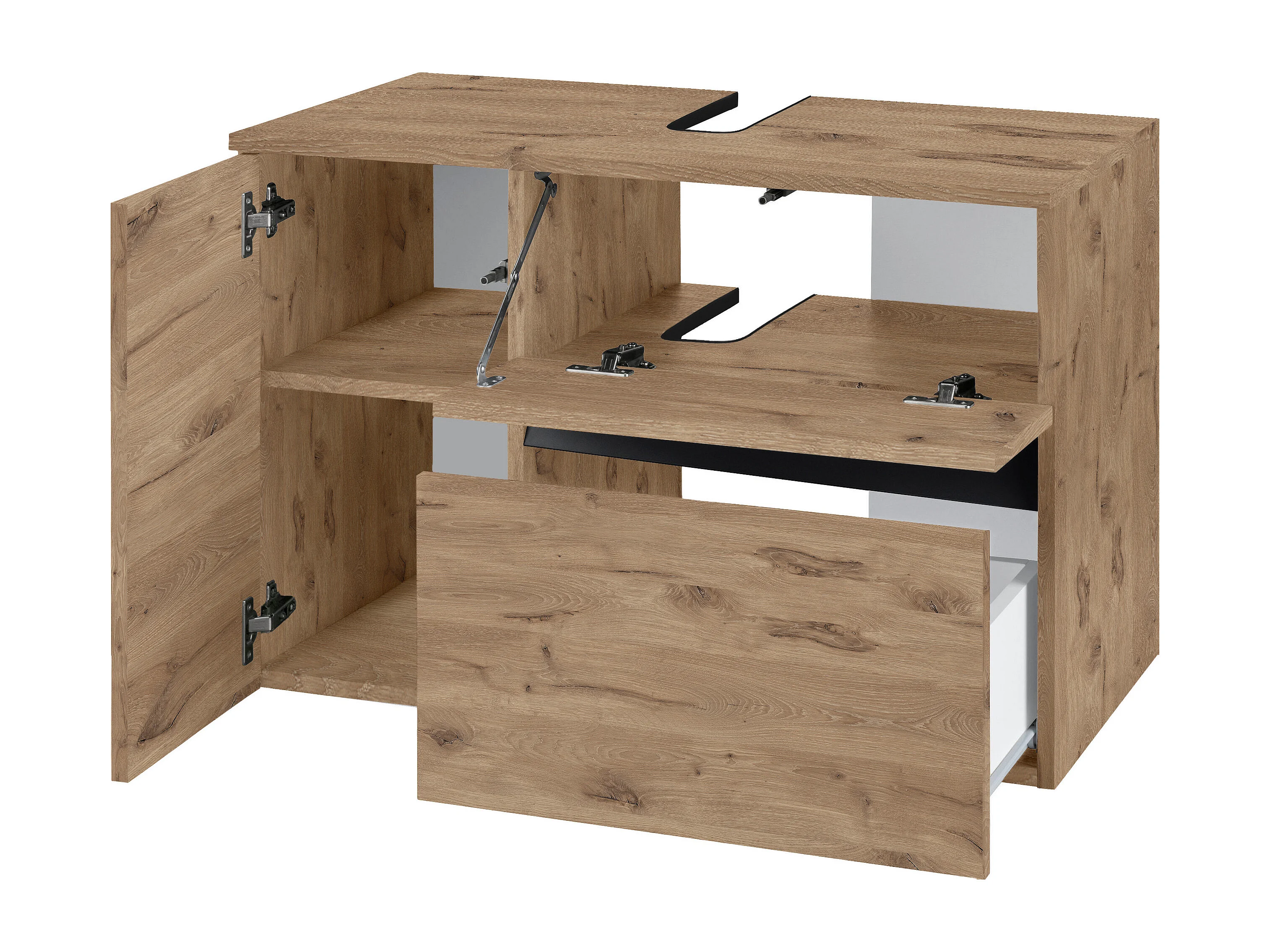 Wisla | Meuble évier avec 1 porte et 1 tiroir 1 abattant aspect chêne