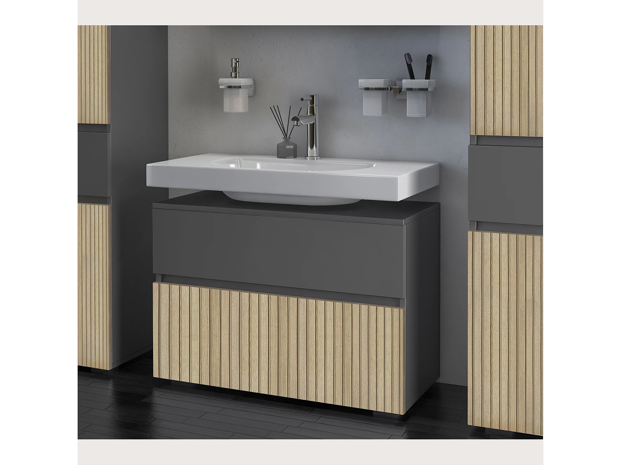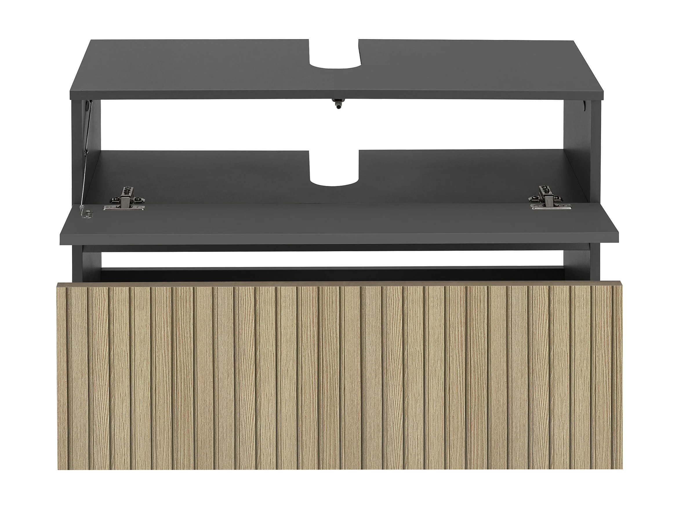 Wisla | Meuble évier avec 1 rabat 1 tiroir aspect bois anthracite