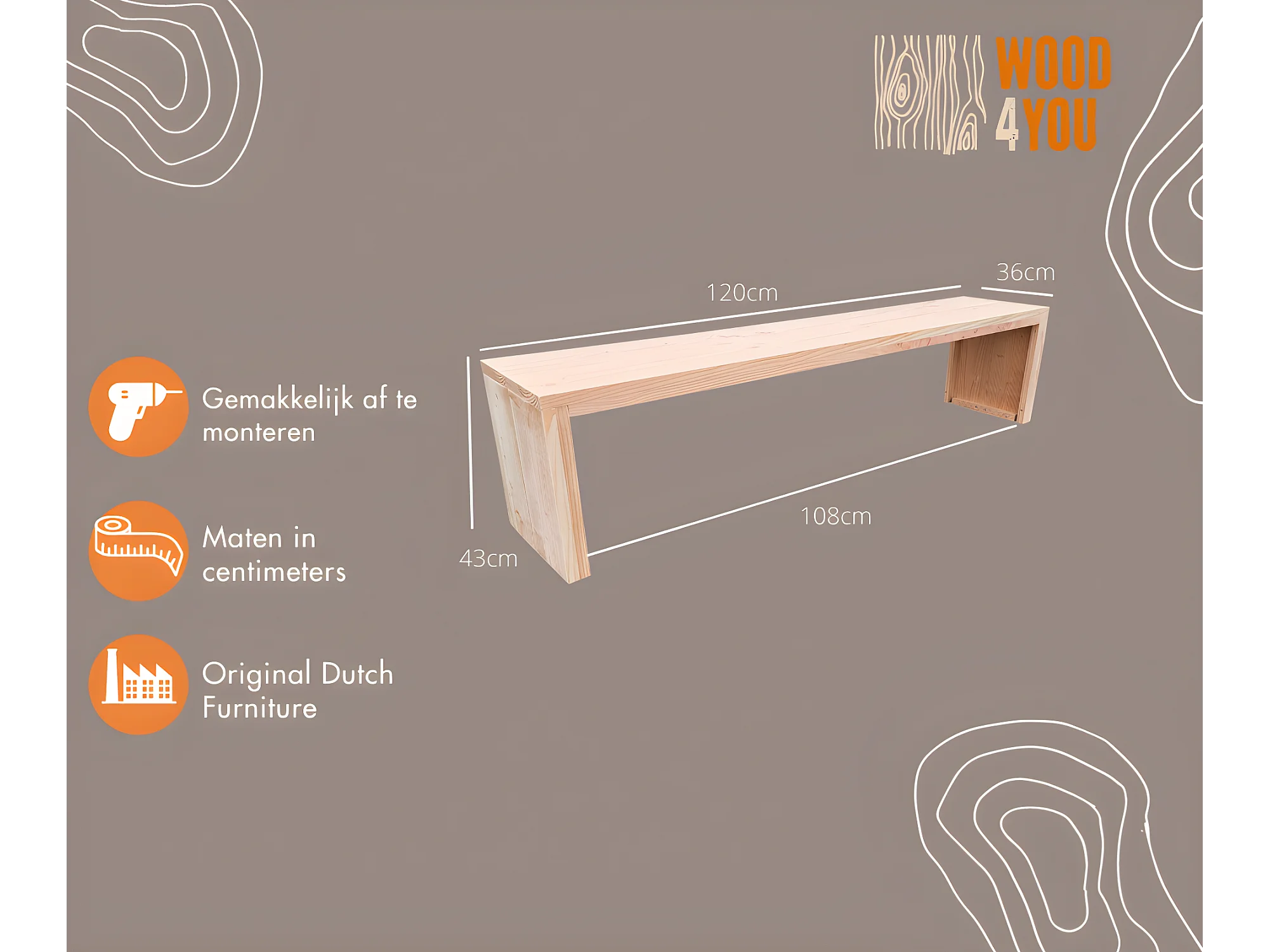 Wood4you - Banc de jardin Amsterdam Douglas 120Lx43Hx38D cm