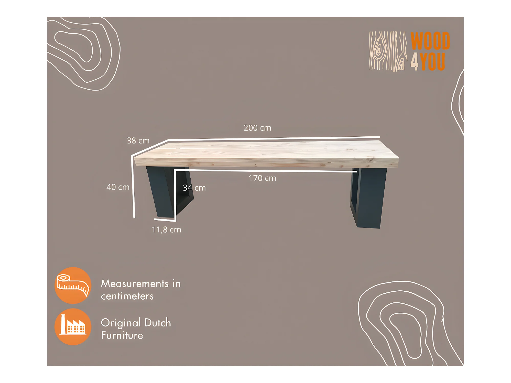 Wood4you - Banc de jardin New England Douglas - 200Lx40Hx38D cm anthracite