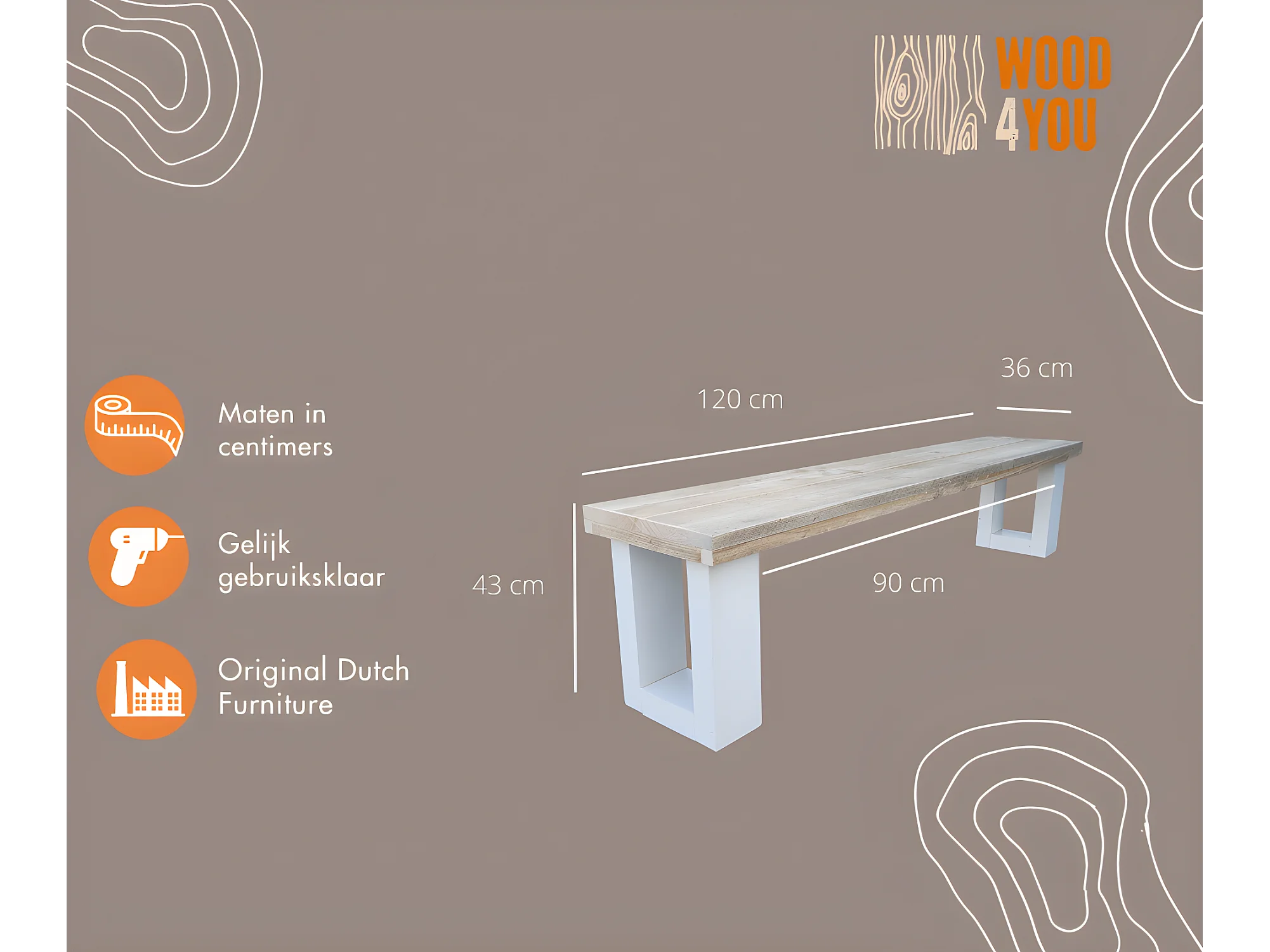 Wood4you - Banc de Jardin New England Échafaudage Bois 120Lx40Hx38P cm blanc