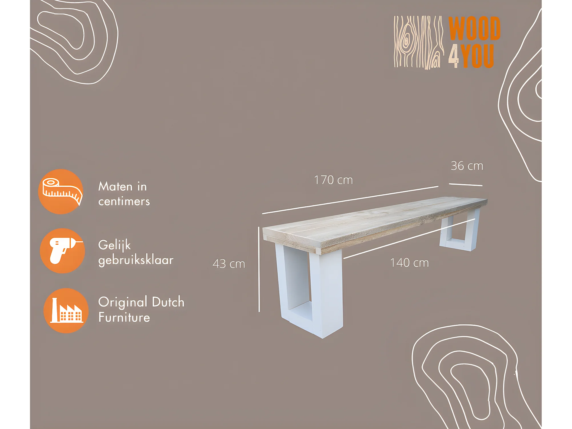 wood4you - Banc de Jardin New England Échafaudage Bois 170Lx40Hx38P cm blanc