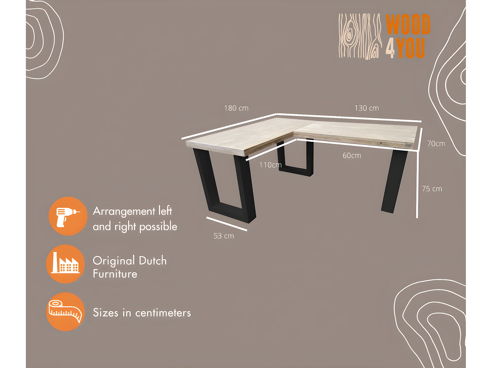 Wood4you - Bureau d'angle - New england bois massif- Nior