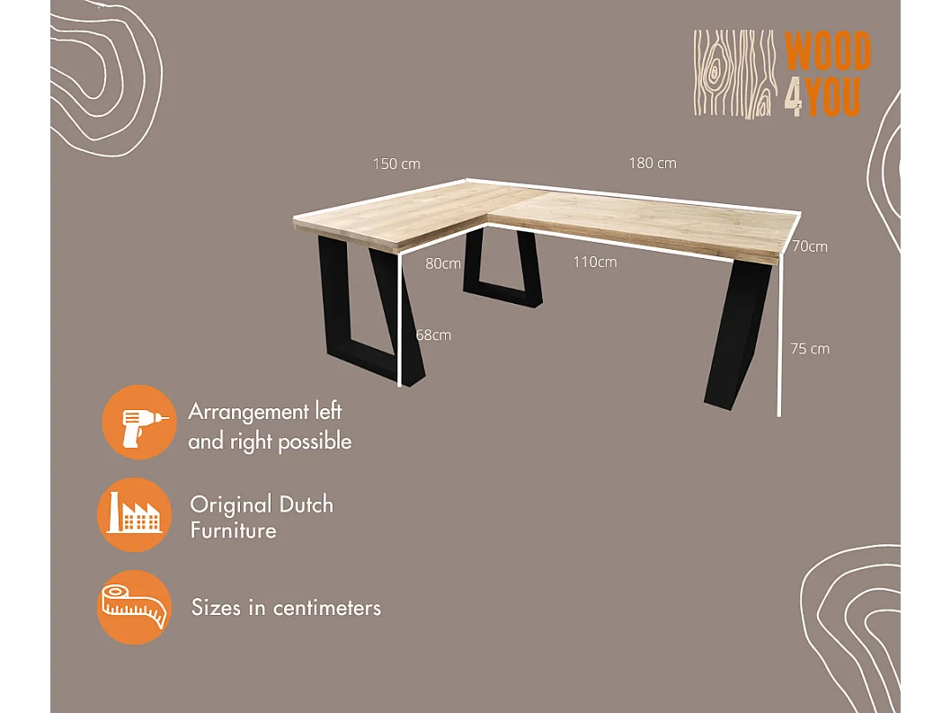Wood4you - bureau d'angle - vancouver bois d'échafaudage - 180150 noir