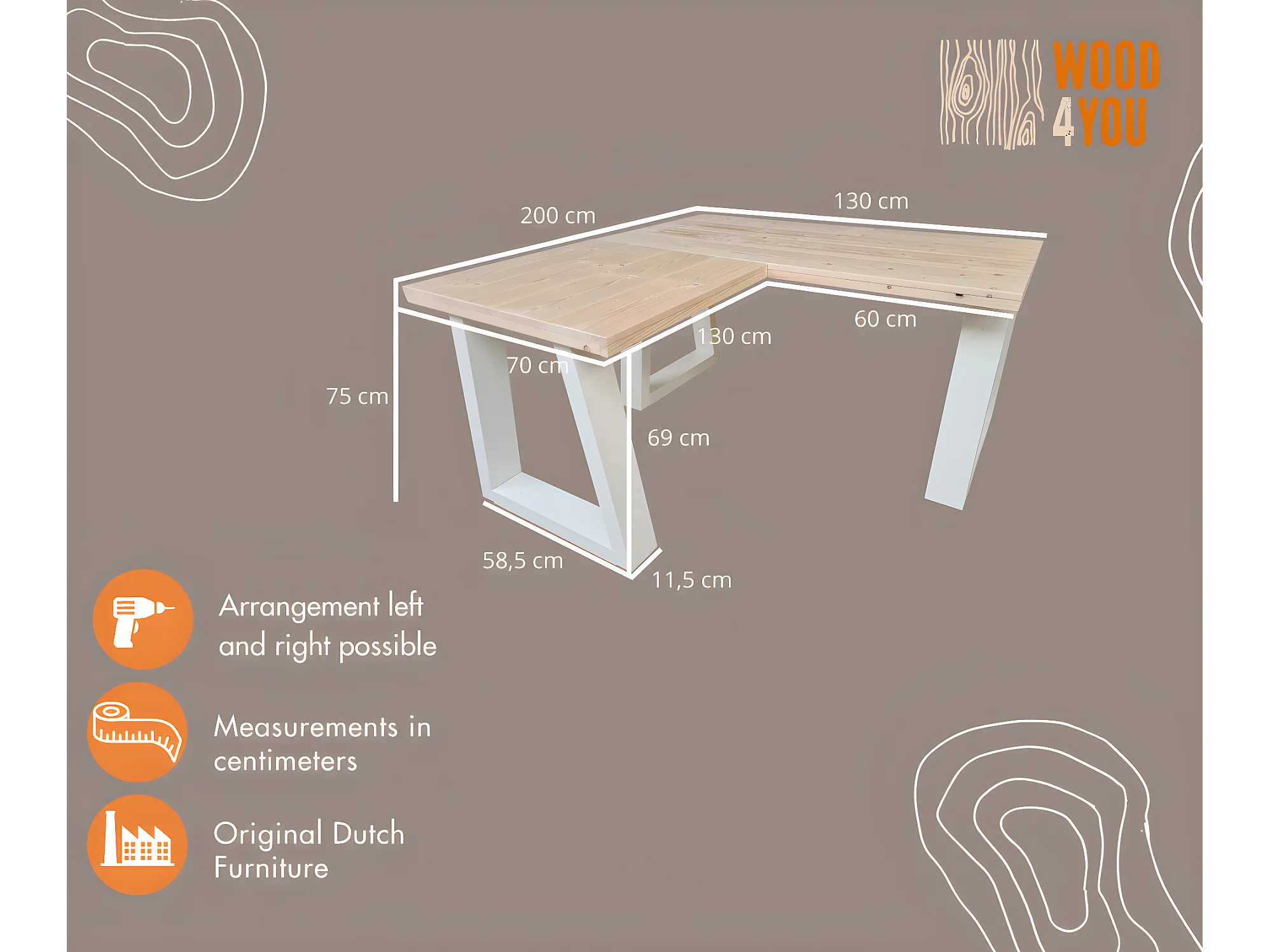 Wood4you - Bureau d'angle - Vancouver Spruce 200/130Lx70Px75H Blanc