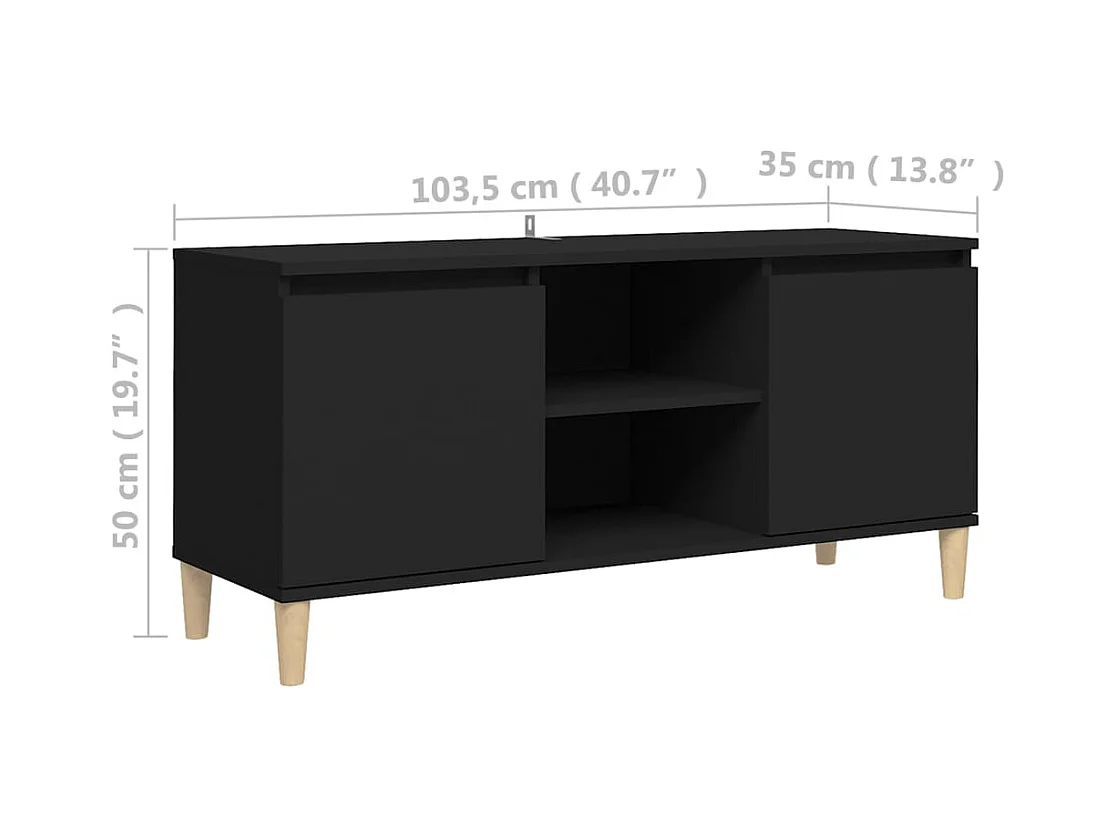 Meuble TV avec pieds en bois massif Noir 103,5x35x50 cm