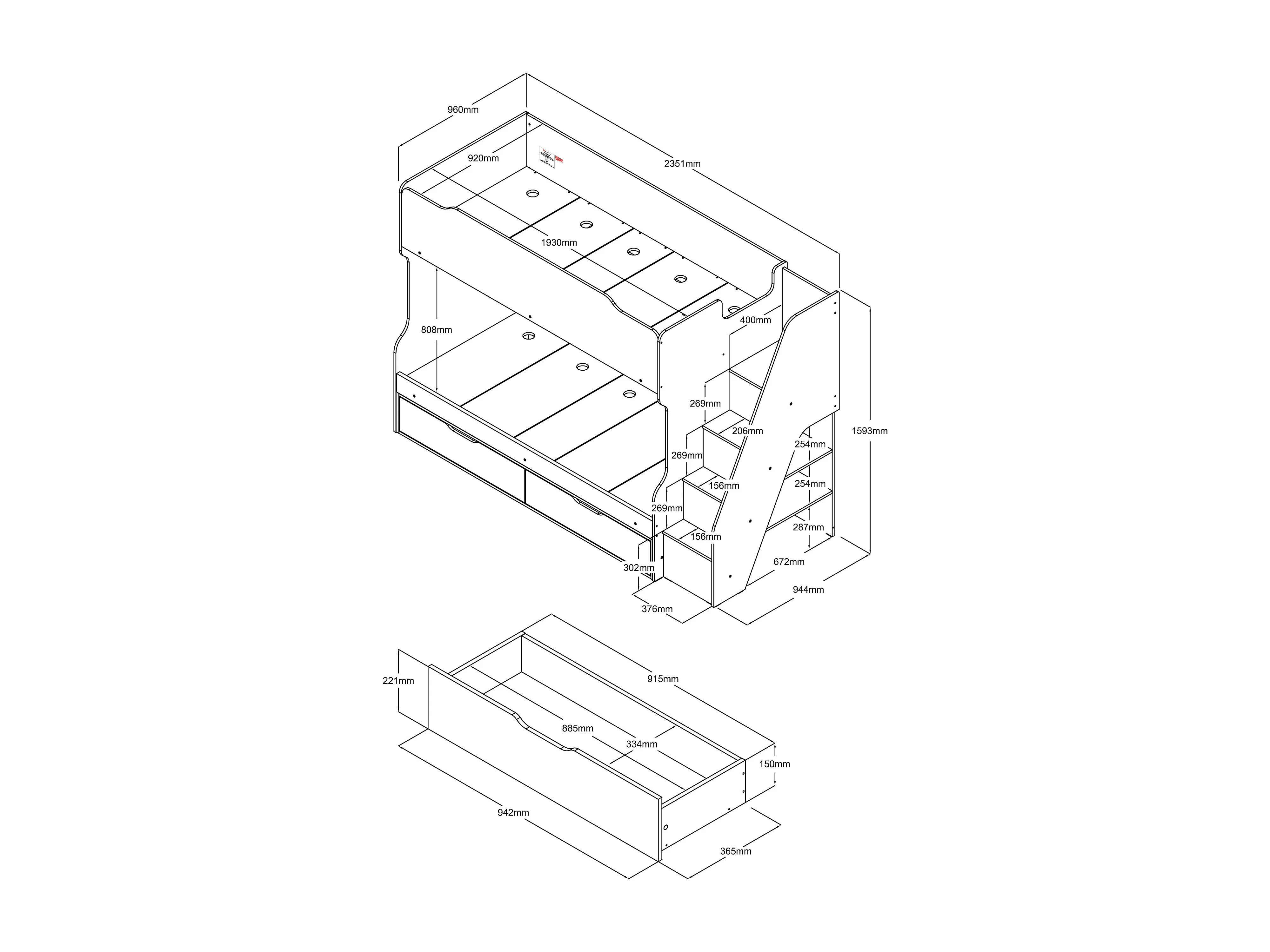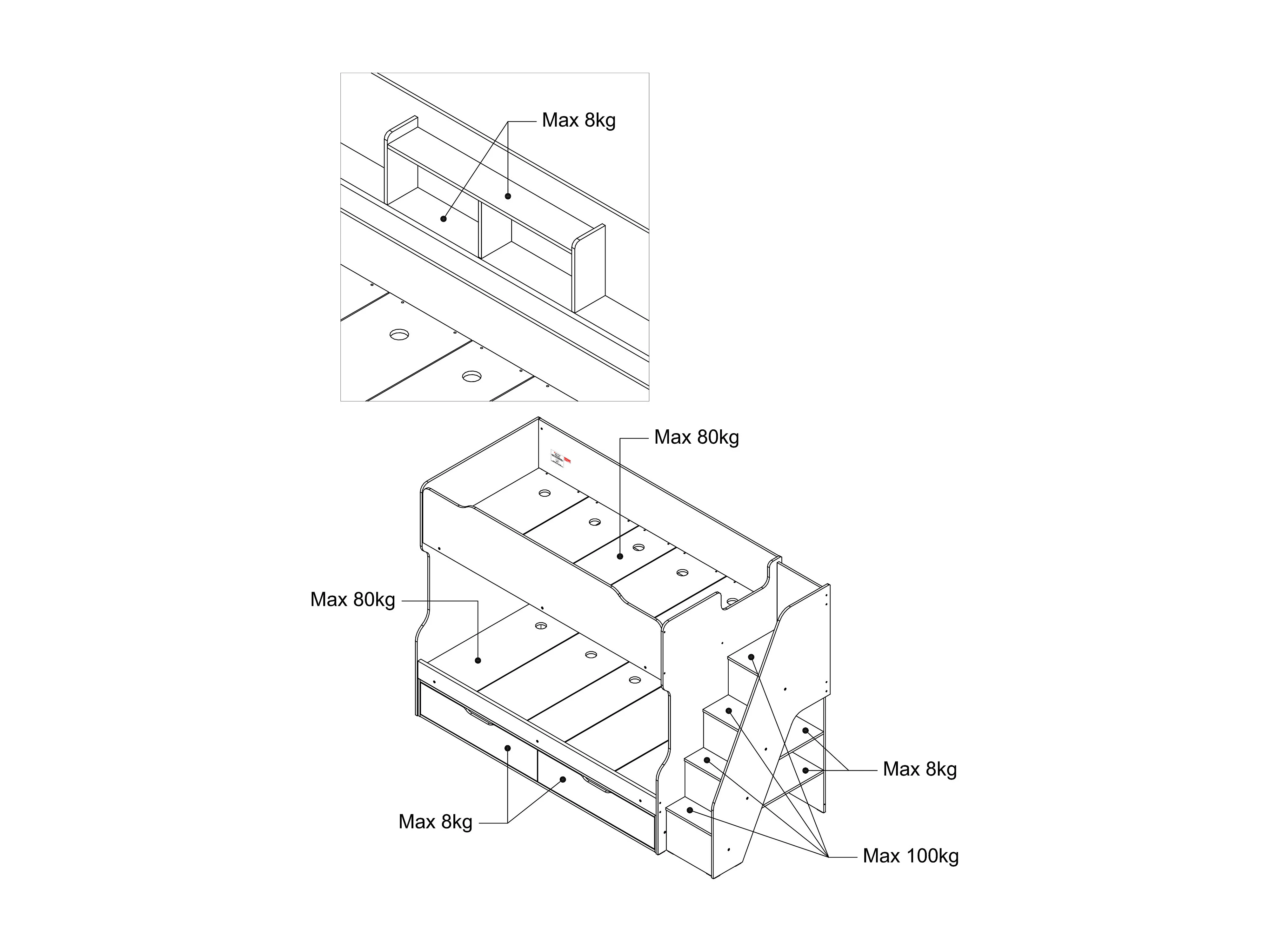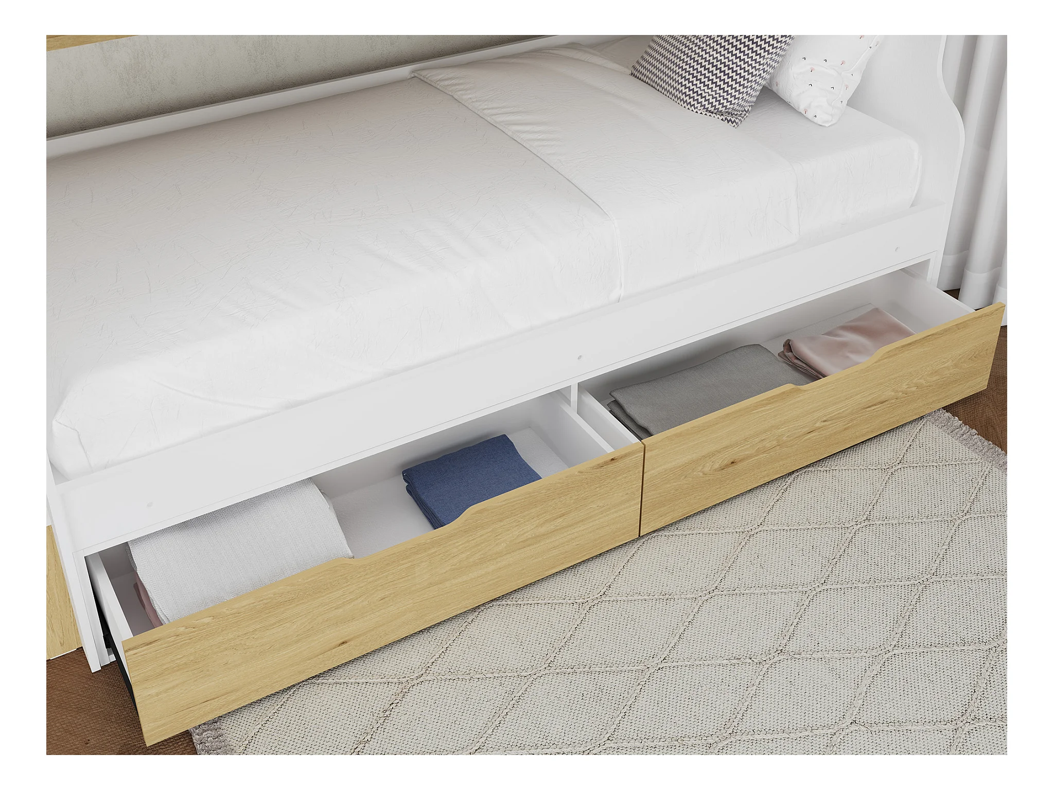 Lit superposé 90 x 190 cm - Avec rangements - Coloris : Blanc et naturel - YALOVA