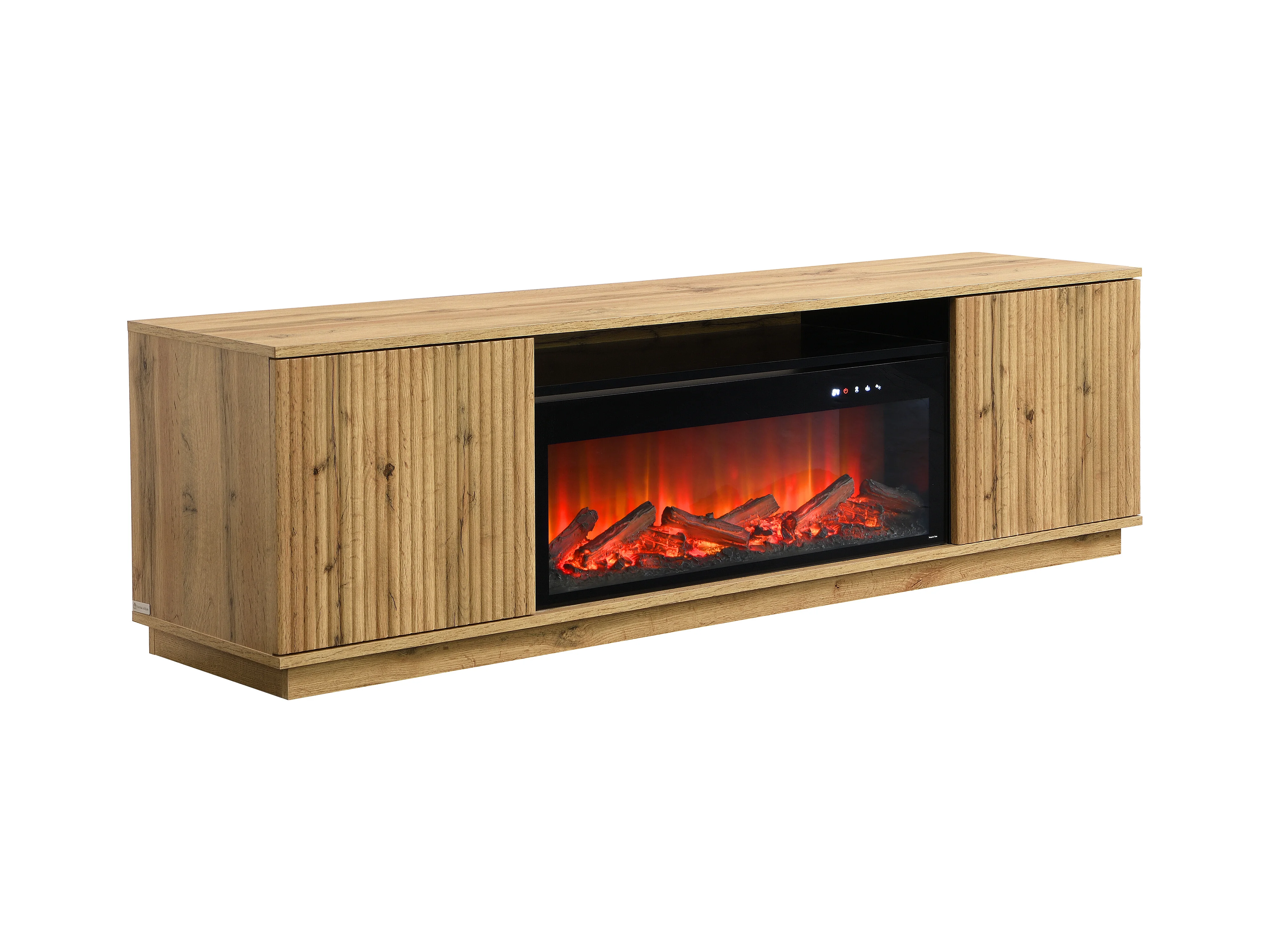 Meuble TV 2 portes en MDF avec effet cheminée à LEDs - Naturel et Noir - YEVINA