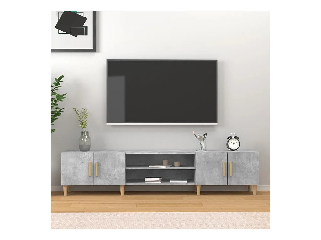 Ylenna Meuble TV gris béton 180x31,5x40 cm bois d'ingénierie