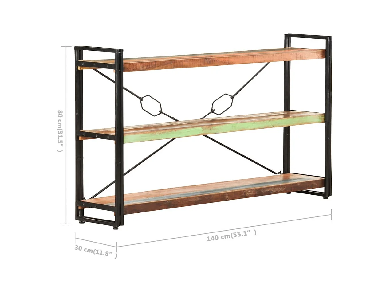Yoan Bibliothèque 3 niveaux 140x30x80 cm Bois de récupération massif