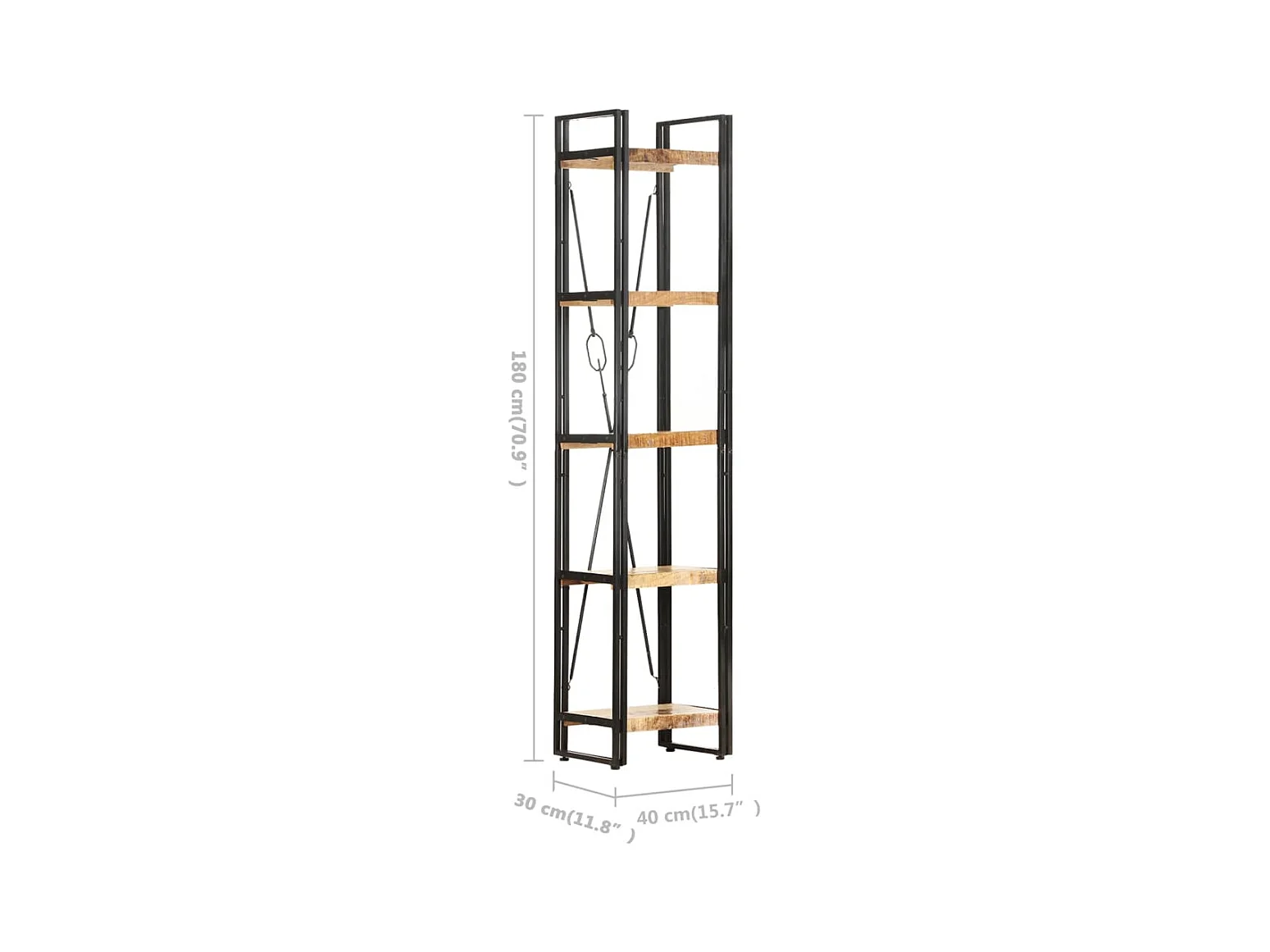 Yoan Bibliothèque à 5 niveaux 60x30x180 cm Bois de manguier solide