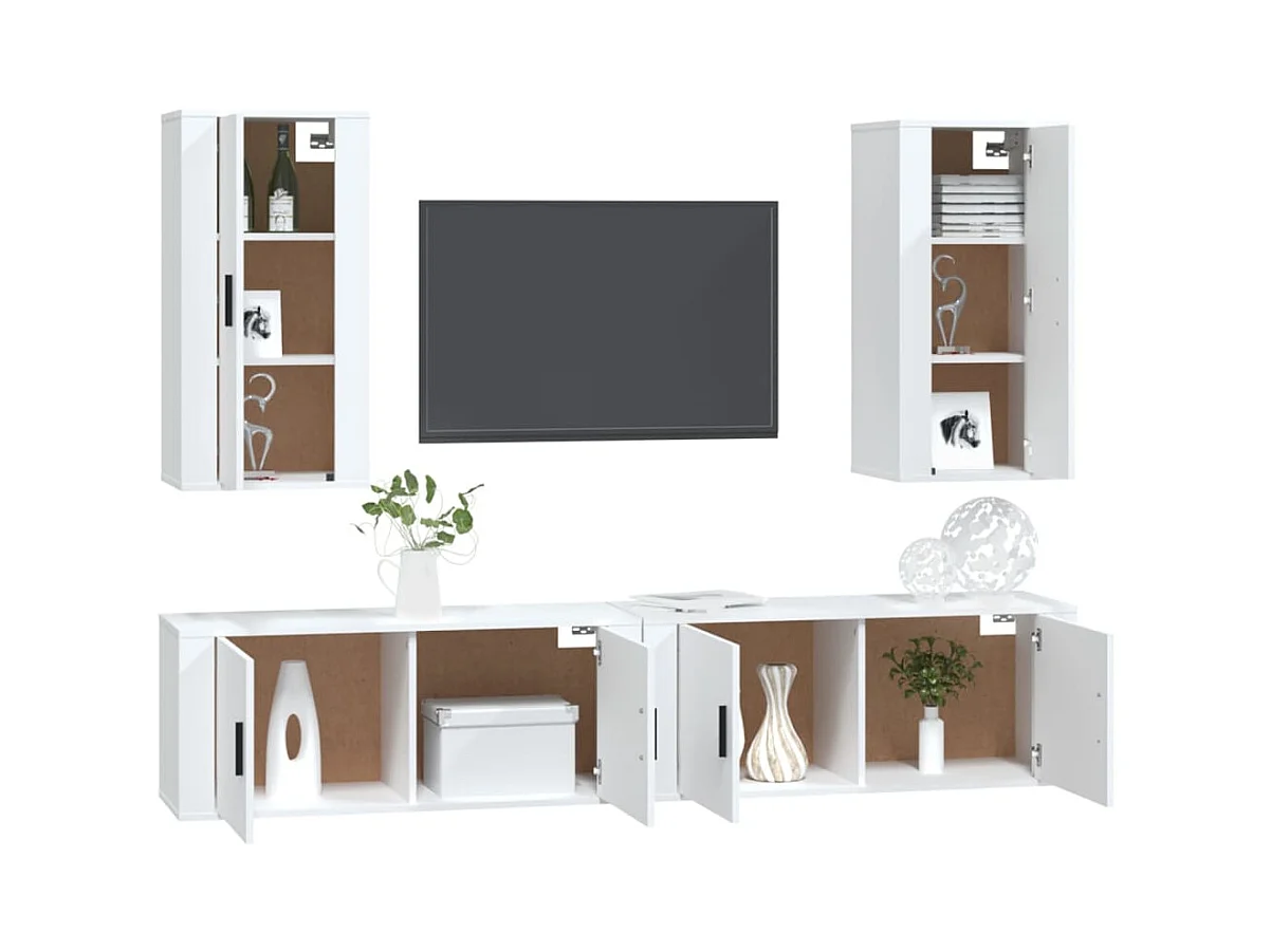 Yrill Ensemble de meubles TV 4 pcs Blanc Bois d'ingénierie