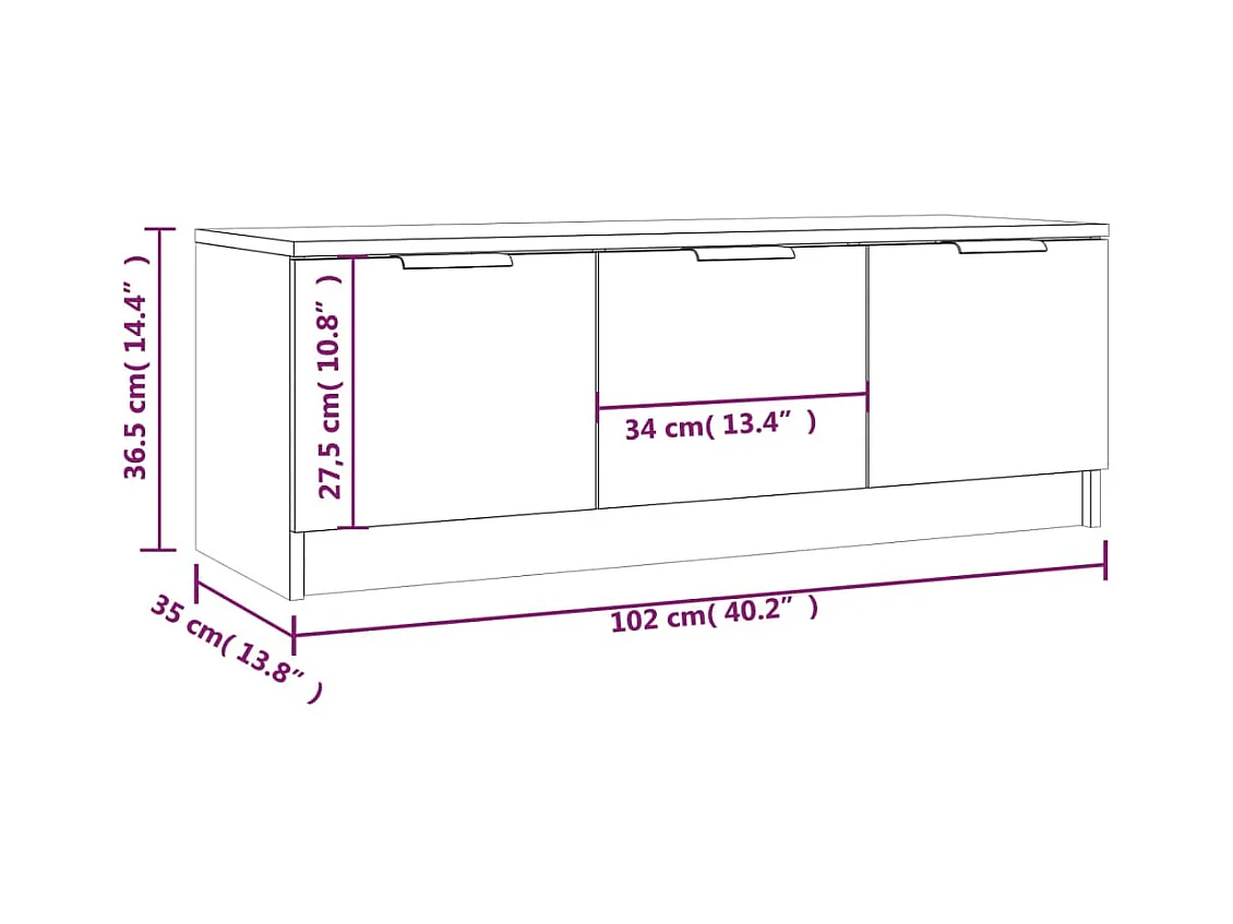 Yrnir Meuble TV Sonoma gris 102x35x36,5 cm Bois d'ingénierie