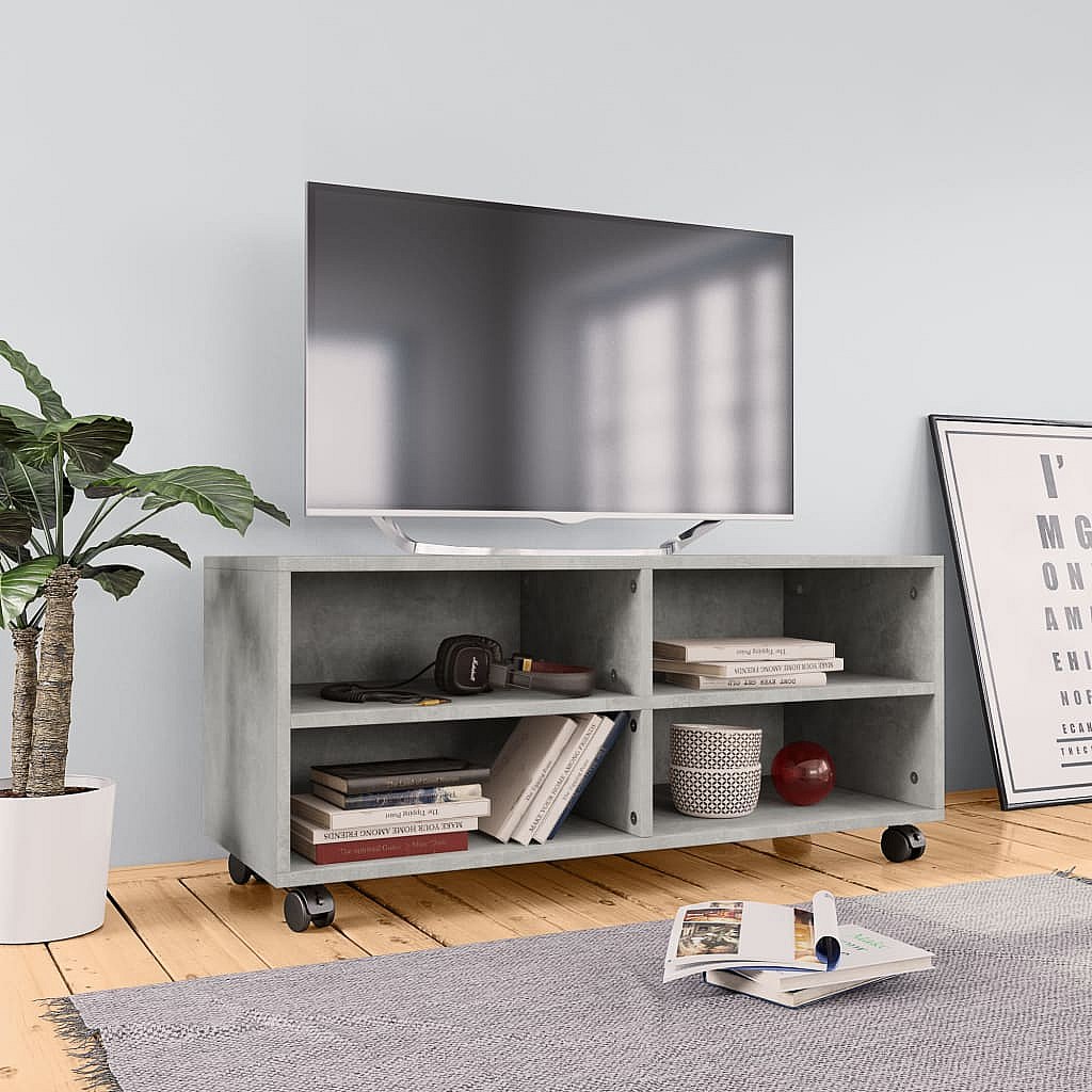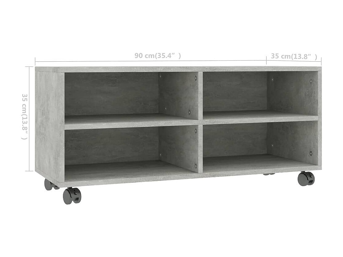 Yron Meuble TV avec roulettes Gris béton 90x35x35 cm Bois ingénierie