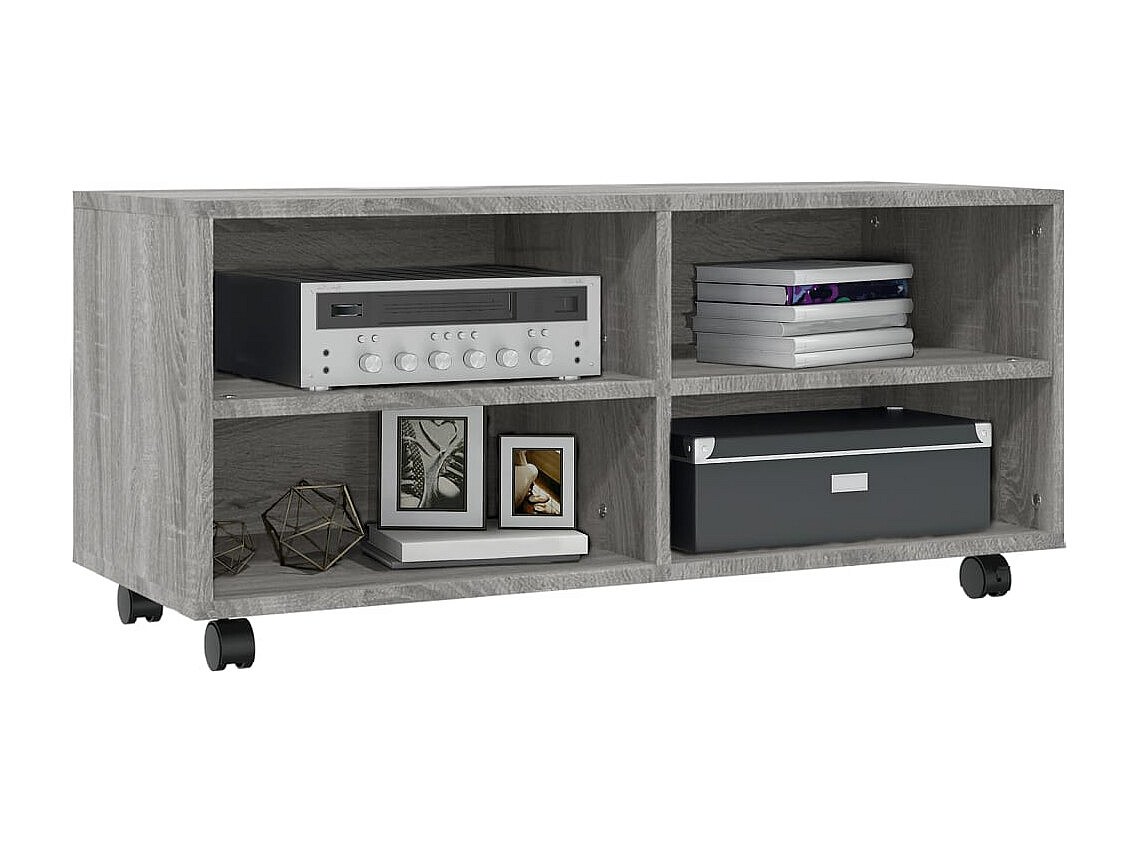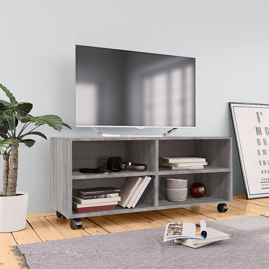 Yron Meuble TV sur roulettes Sonoma gris 90x35x35 cm Bois ingénierie
