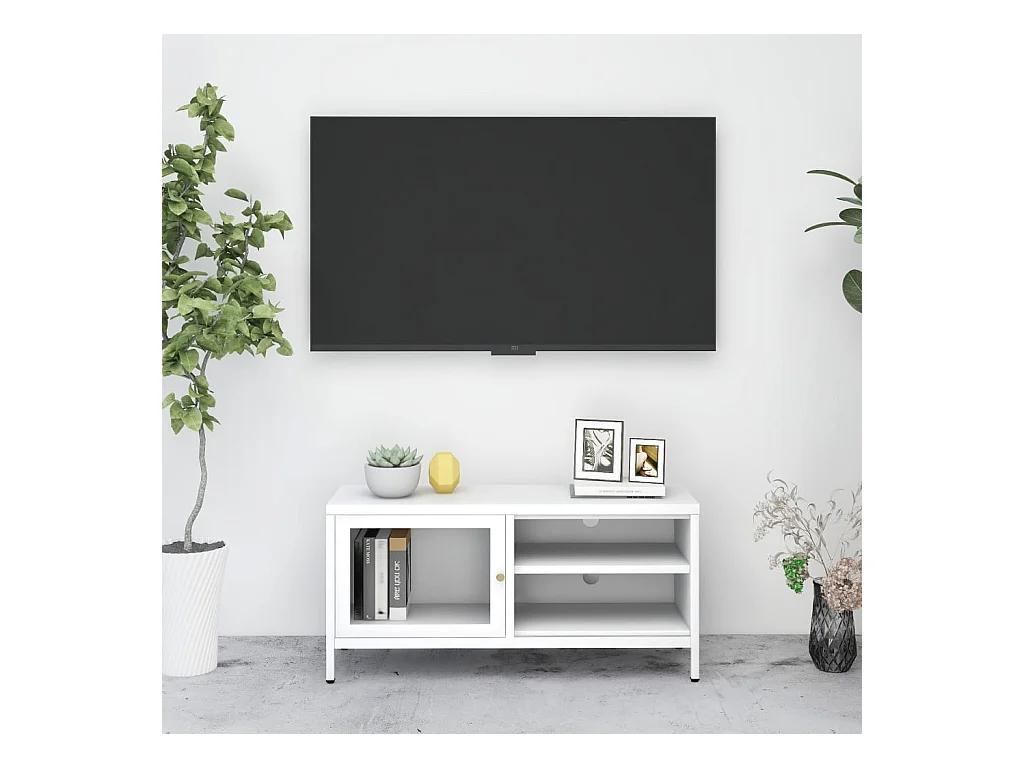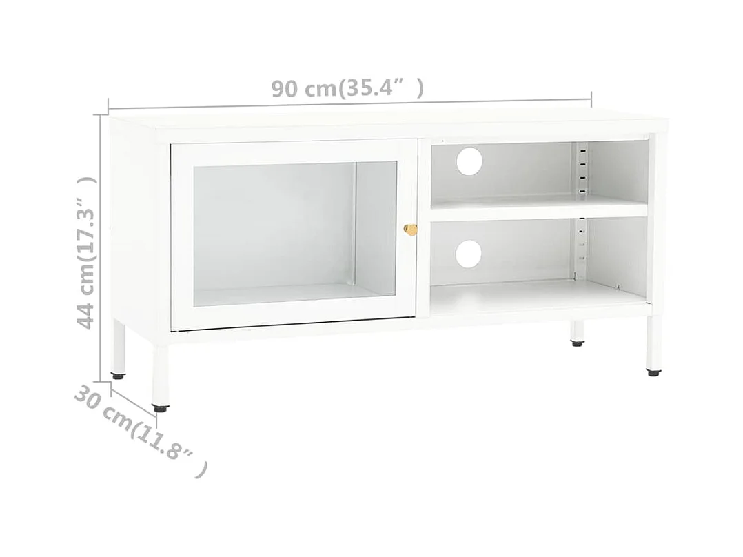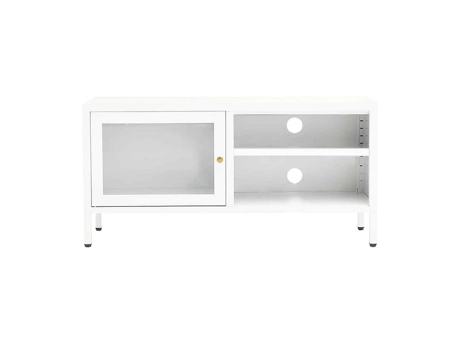 Zaanstad Meuble TV Blanc 90x30x44 cm Acier et verre