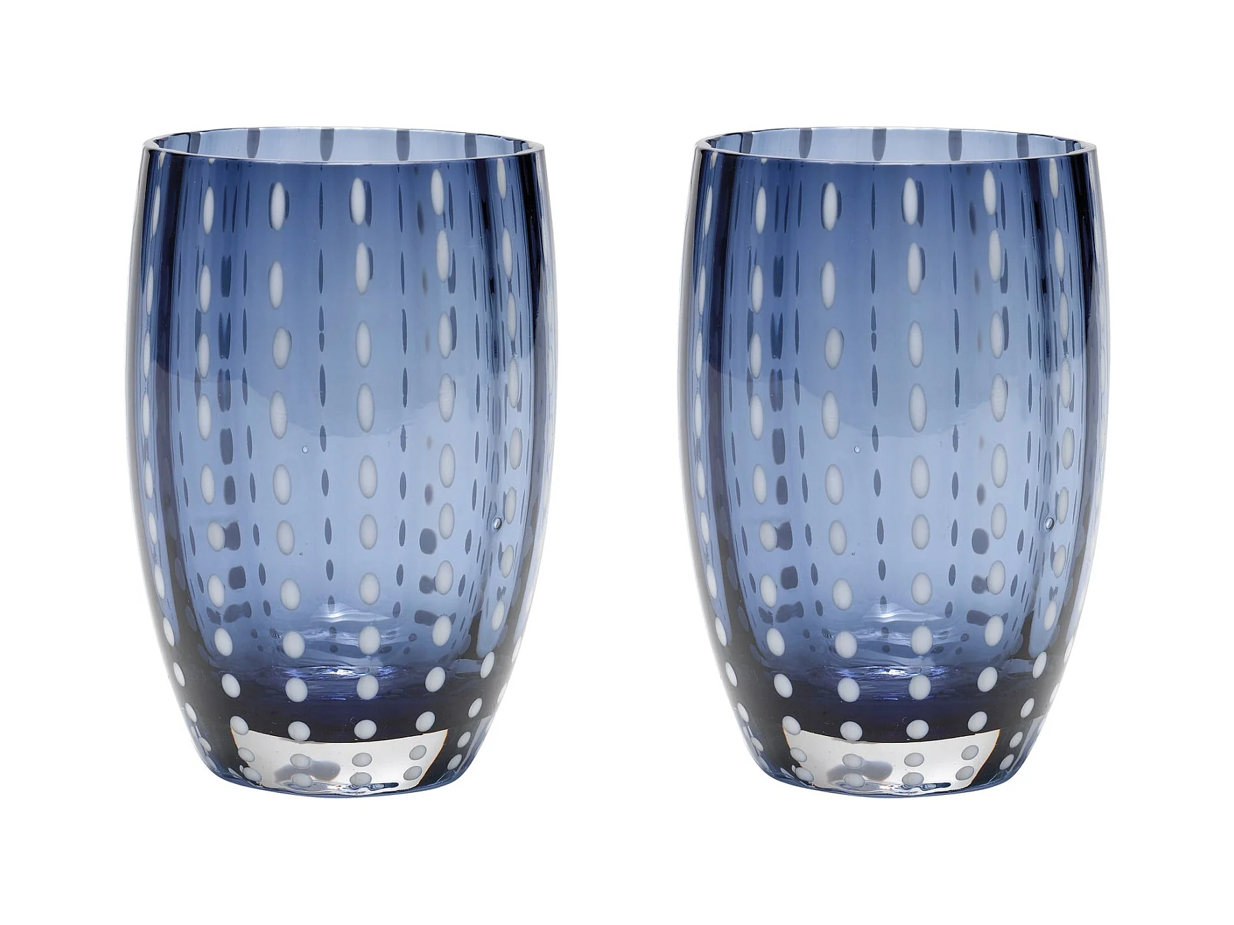 Zafferano Perle Glass Blue Grey - Verre soufflé à la bouche, 32 cl, fait main - Set de 2 verresartisanaux pour eau ou cocktails