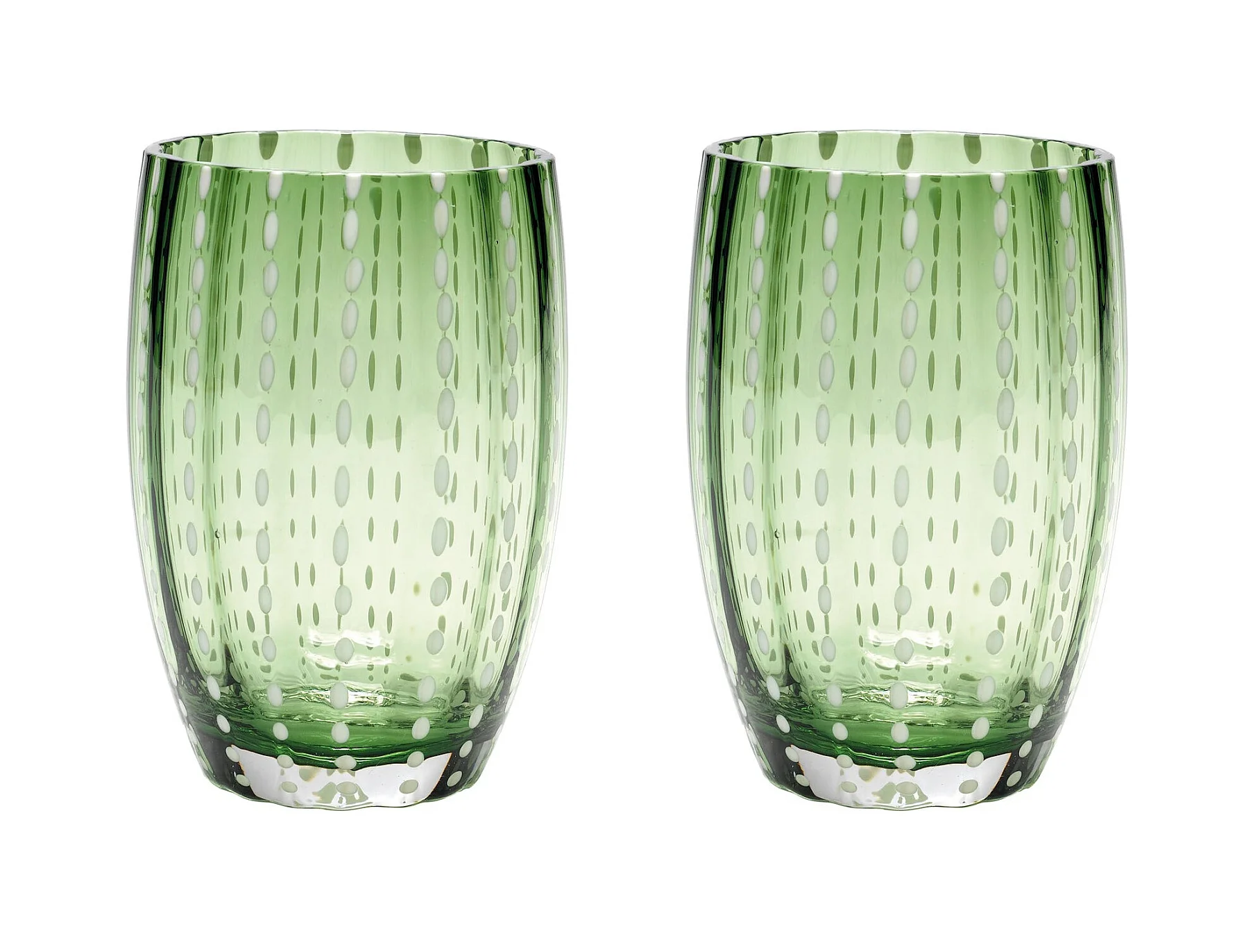 Zafferano Perle Verre Vert Anglais – verre soufflé 32cl, fait main, set de 2 verres artisanaux pour eau ou cocktails, raffiné