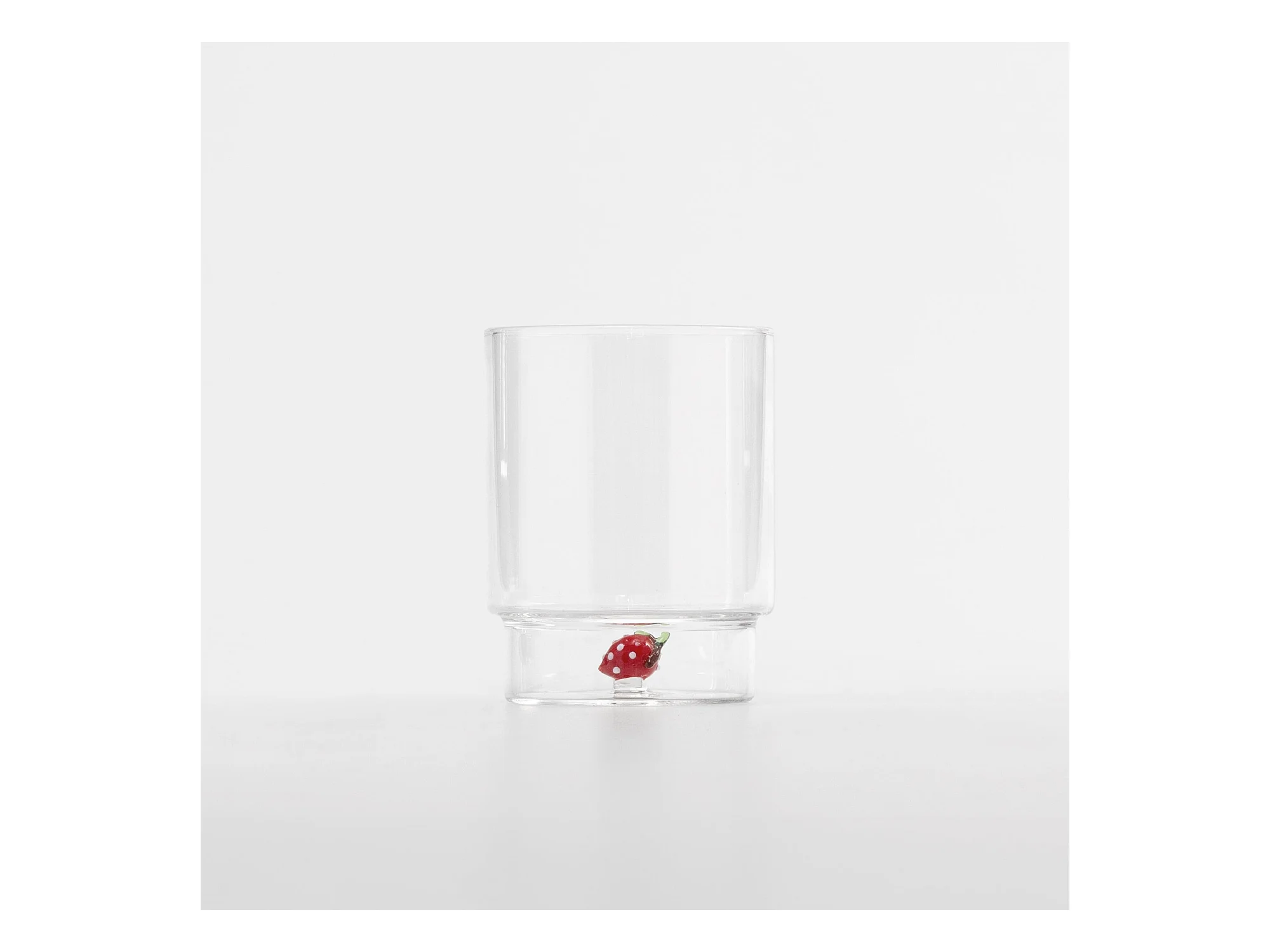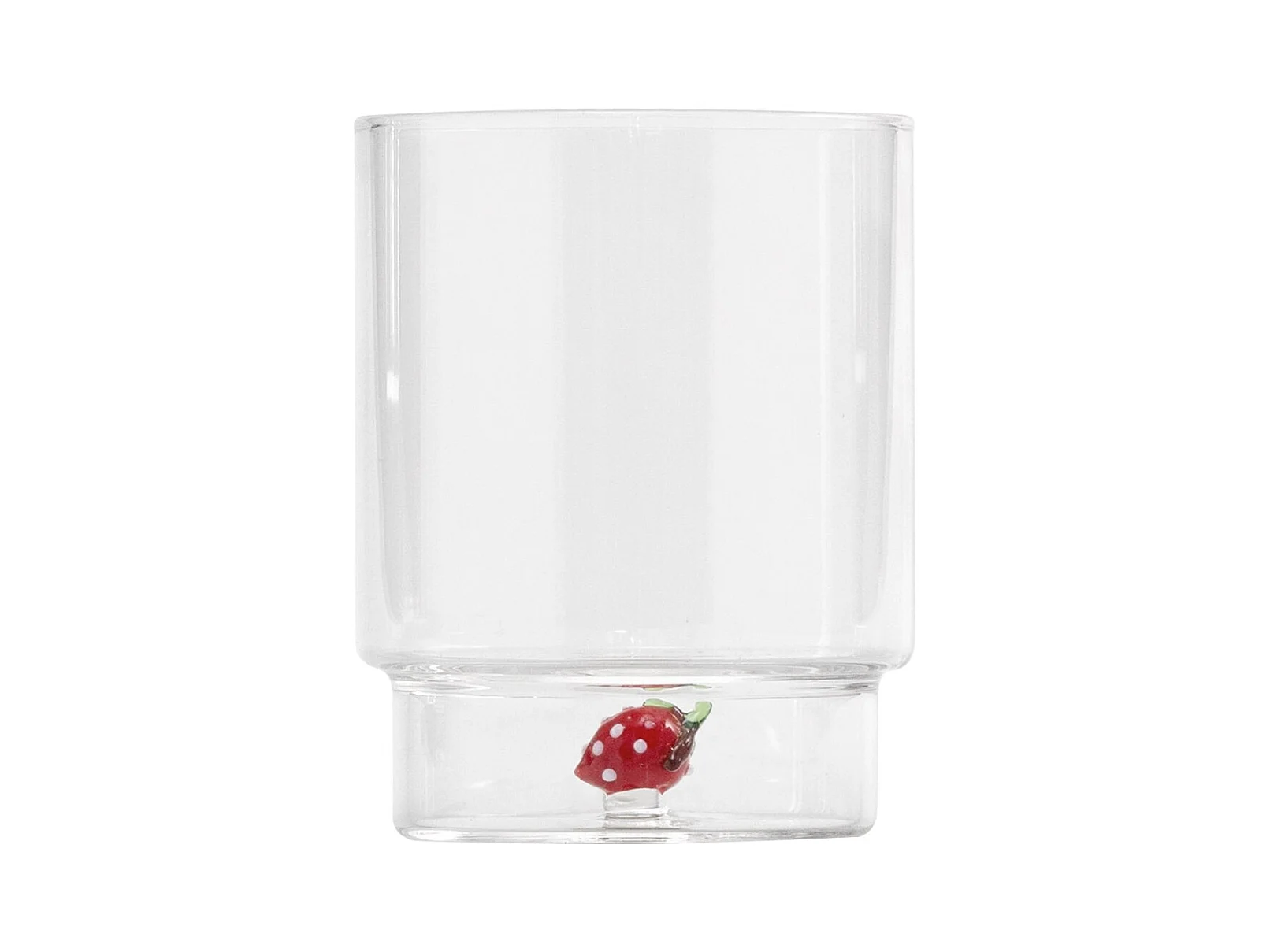Zafferano Teca Frutta - Lot de 6 verres en verre borosilicate avec fraise - Gobelet 35 cl à double fond décoré à la main, facilement lavable