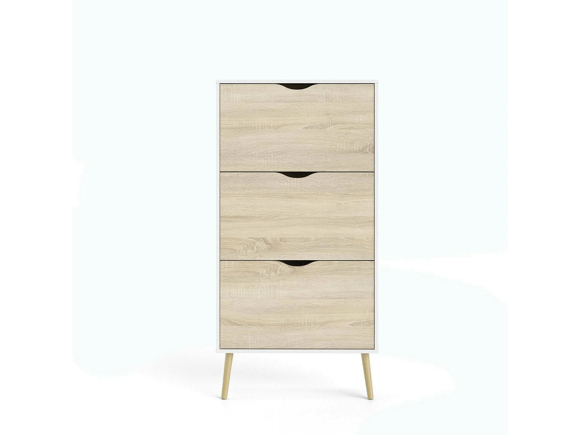 Dmora - Scarpiera Aristotle, Mobile multiuso a 2 ante e 1 anta a ribalta, Portascarpe da ingresso, 100% Made in Italy, cm 120x45h86, Bianco lucido e Acero