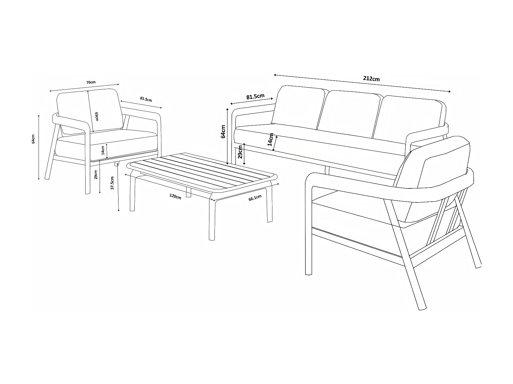 Salon de jardin en aluminium : un canapé 3 places, 2 fauteuils et une table basse - Taupe - ZAYORA de MYLIA