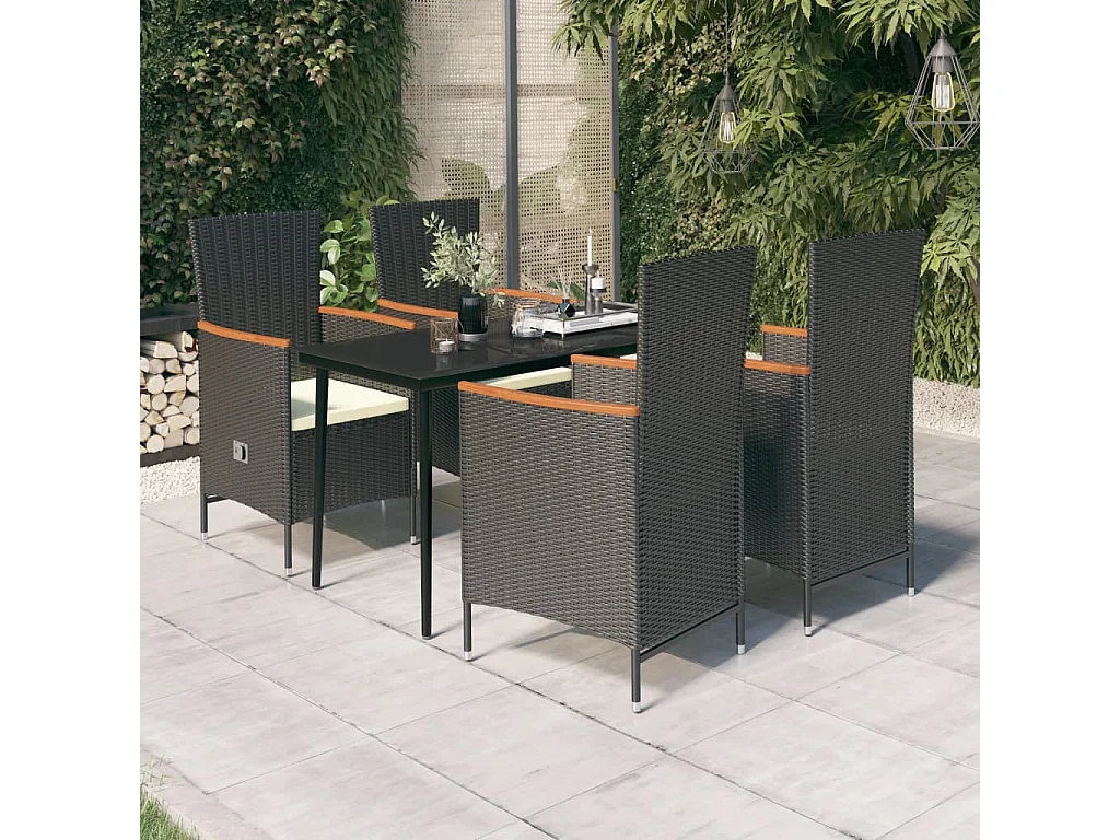 Claudine Ensemble à manger de jardin 5 pcs Noir Rotin PVC