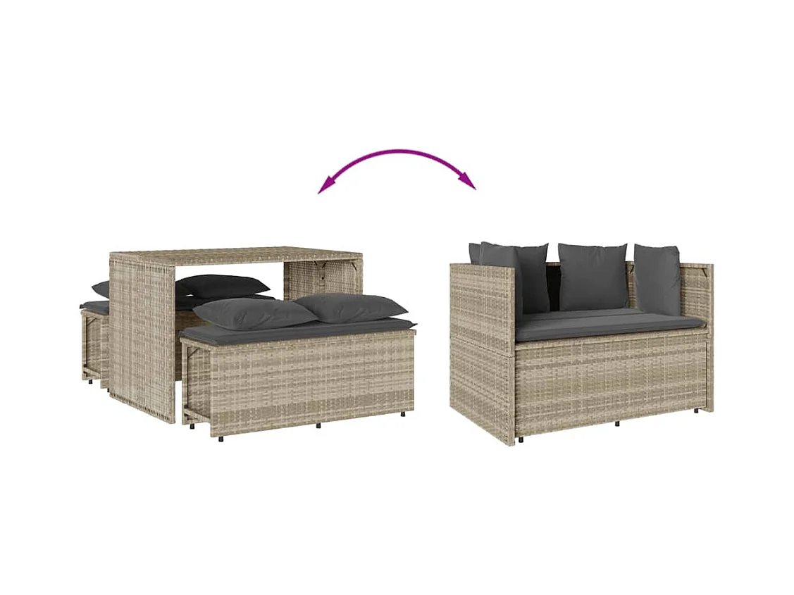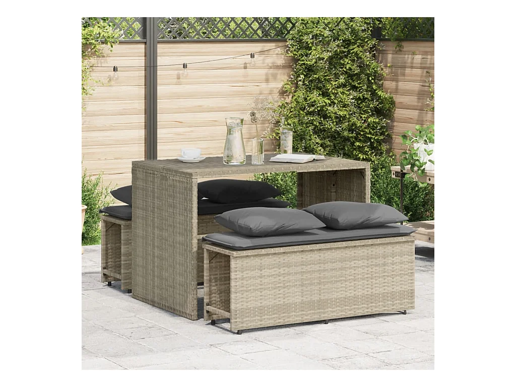 Zizo Ensemble à manger de jardin 3pcs coussins gris clair poly rotin