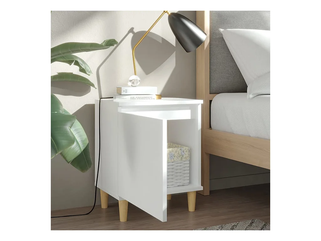 Zwolle Table de chevet avec pieds en bois massif Blanc 40x30x50 cm