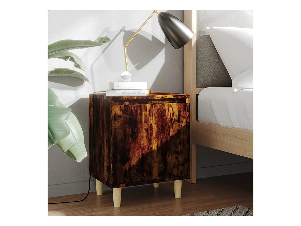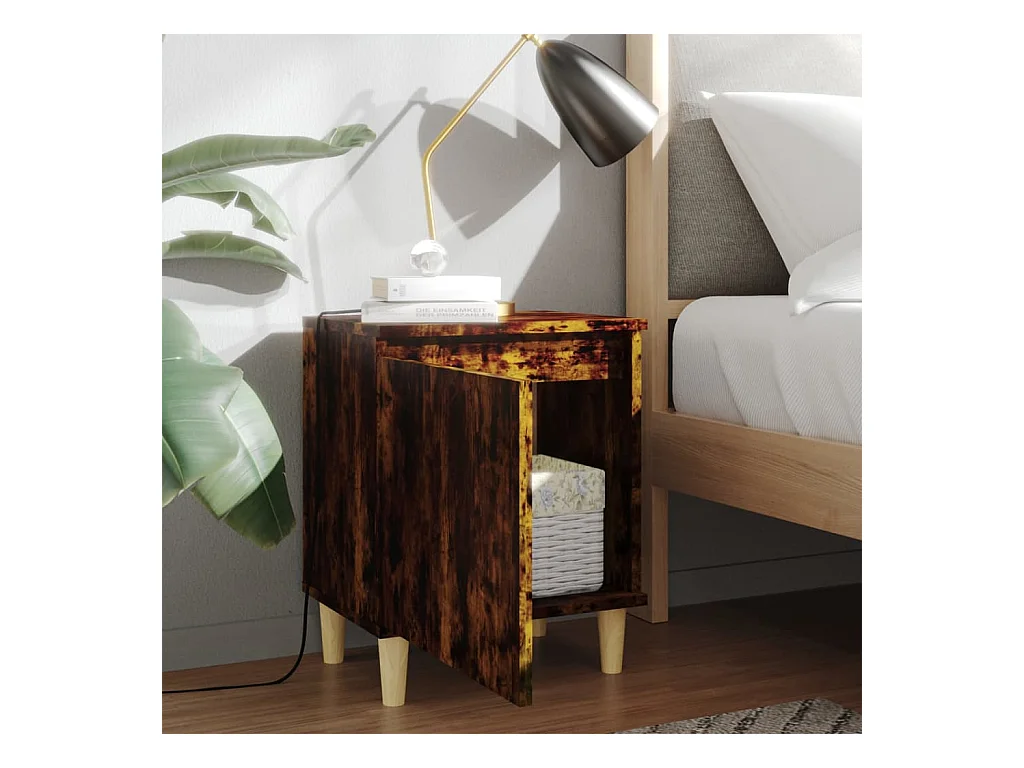 Zwolle Tables de chevet et pieds en bois 2 pcs Chêne fumé 40x30x50 cm