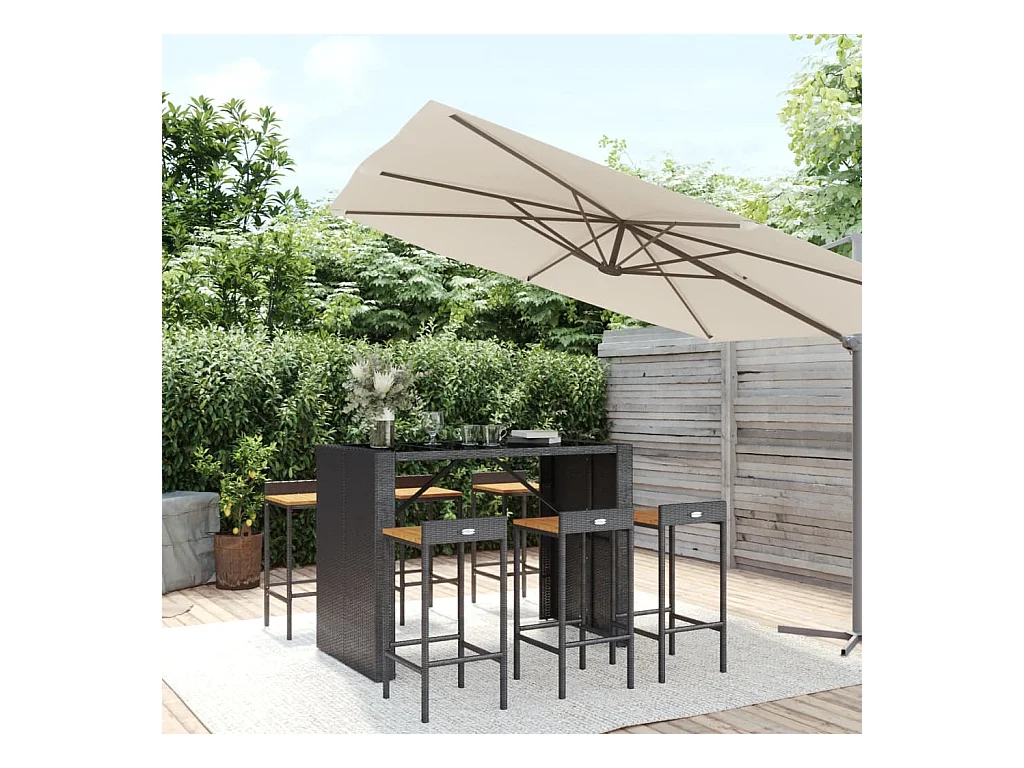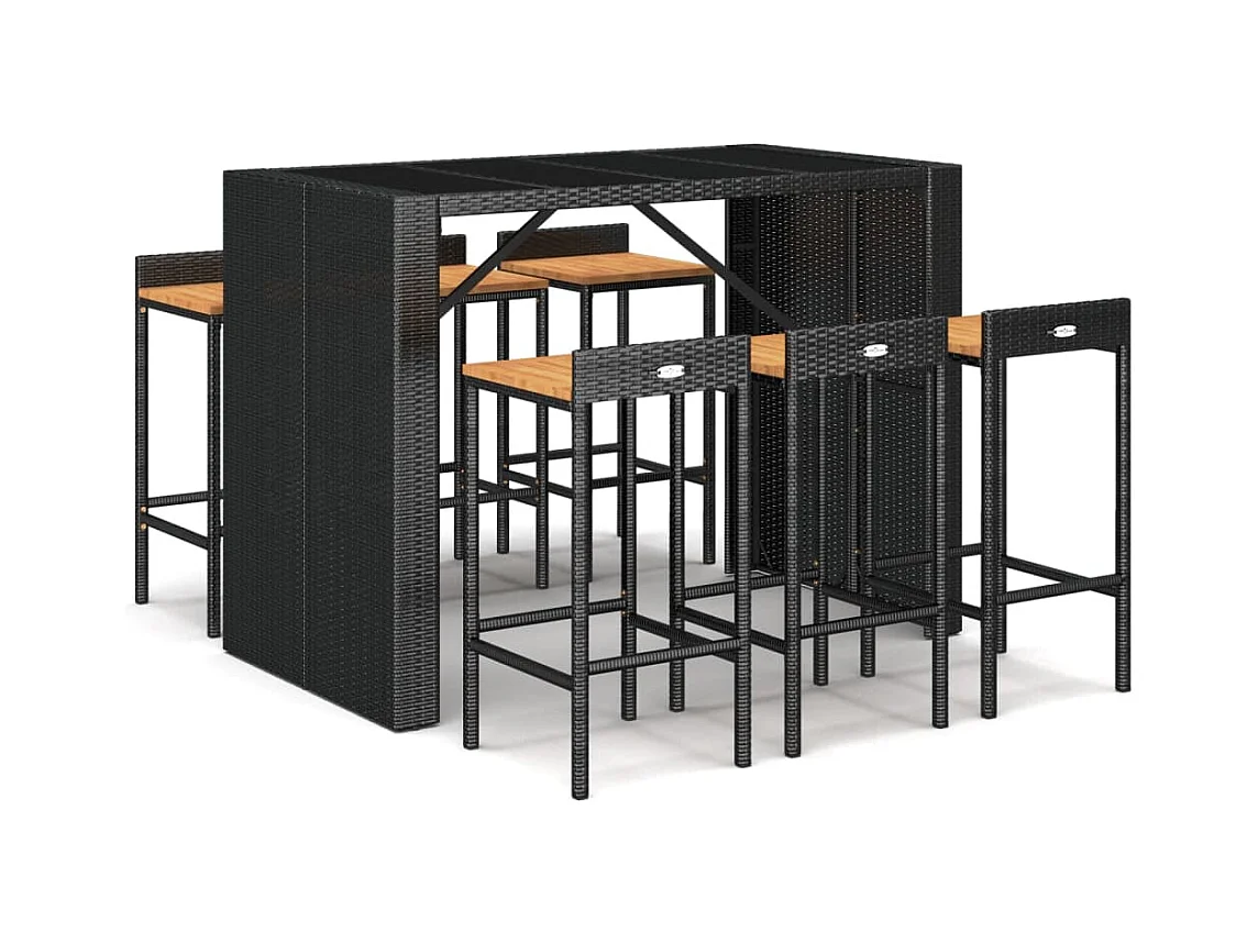 Allouez Ensemble de bar jardin 7 pcs noir poly rotin/bois massif acacia