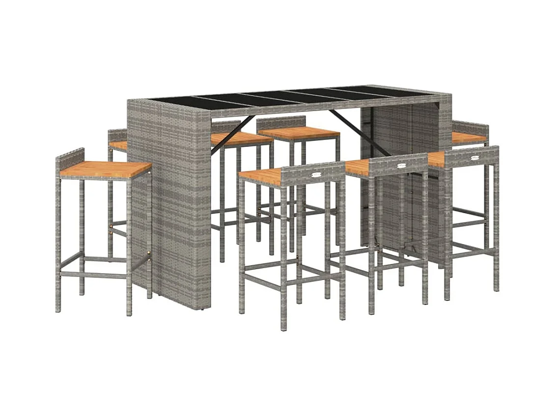 Allouez Ensemble de bar jardin 9 pcs gris poly rotin/bois massif acacia